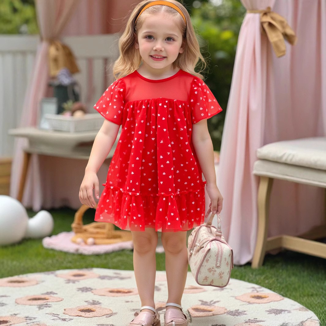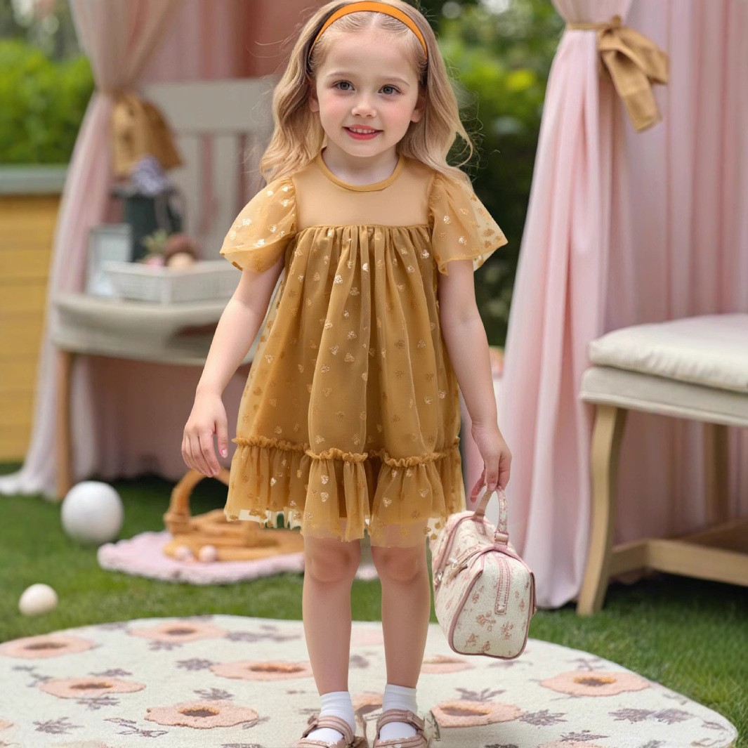 여자를위한 국경 공주 원피스 2025 새로운 슈퍼 외국 스타일 소녀 아기 인터넷 기념 속편 스트랩 메쉬 원피스