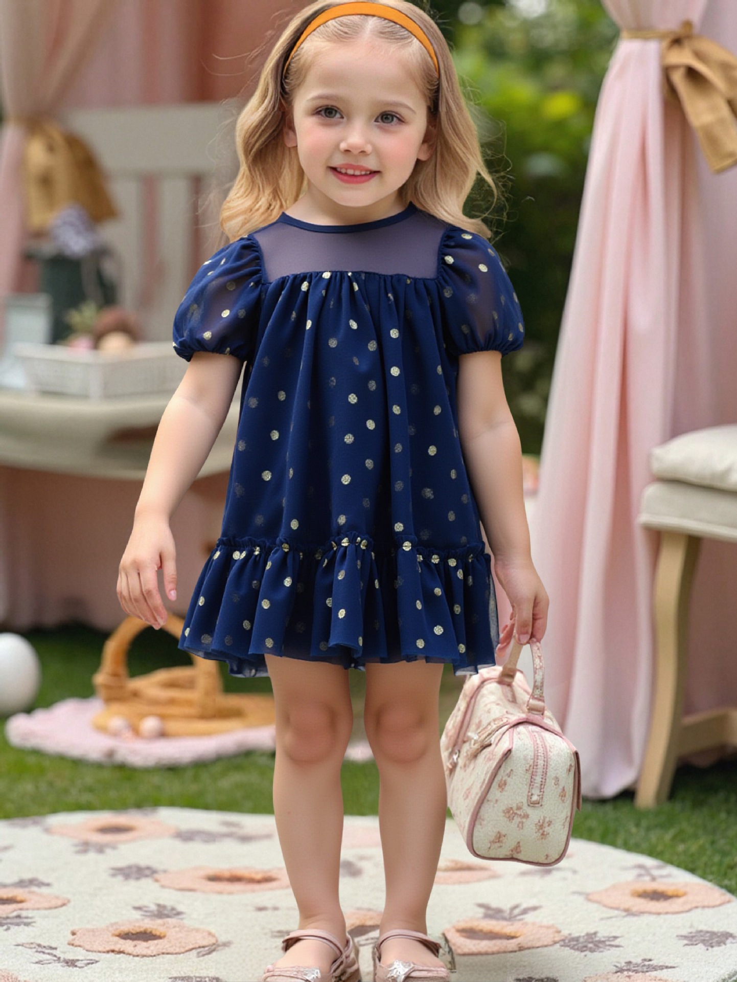 여자를위한 국경 공주 원피스 2025 새로운 슈퍼 외국 스타일 소녀 아기 인터넷 기념 속편 스트랩 메쉬 원피스스토어 가기