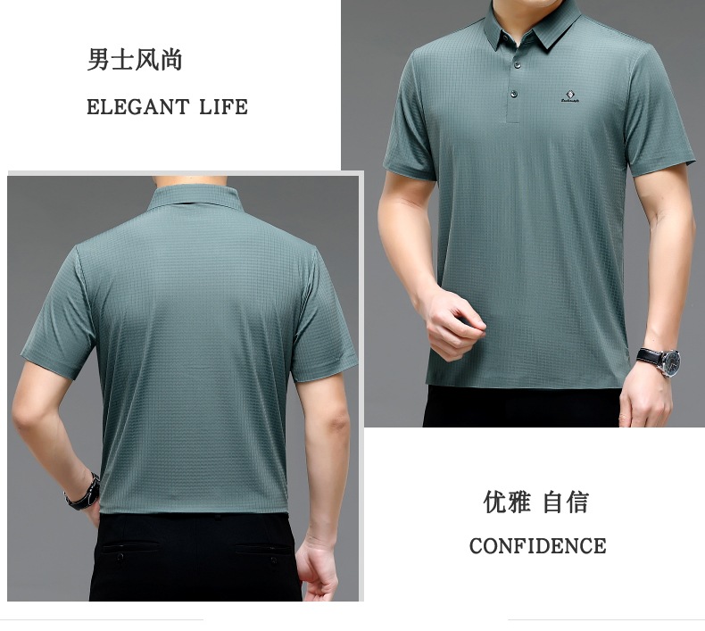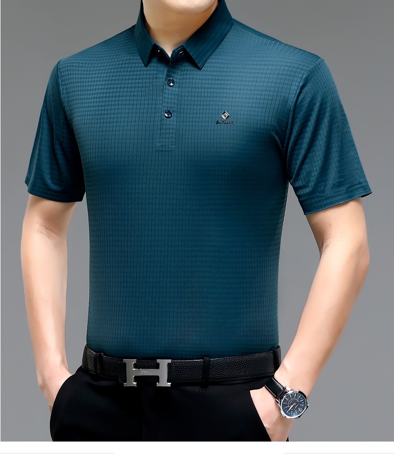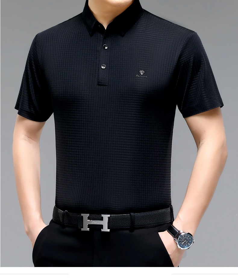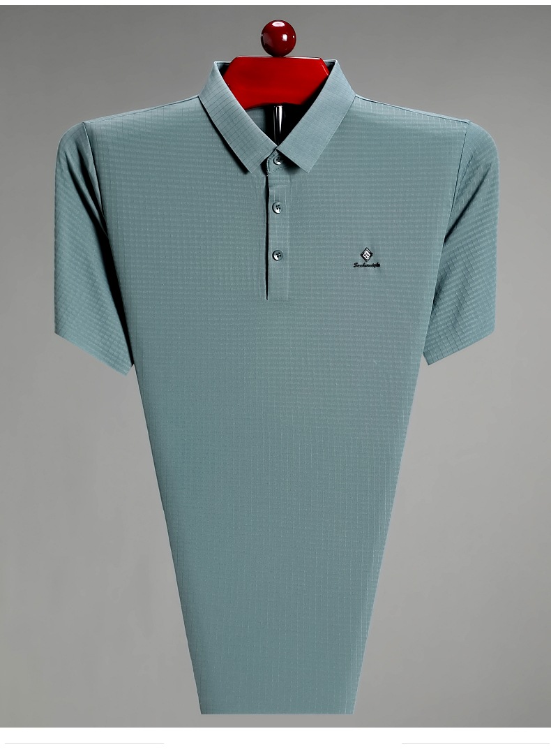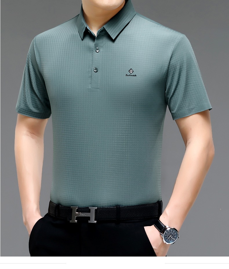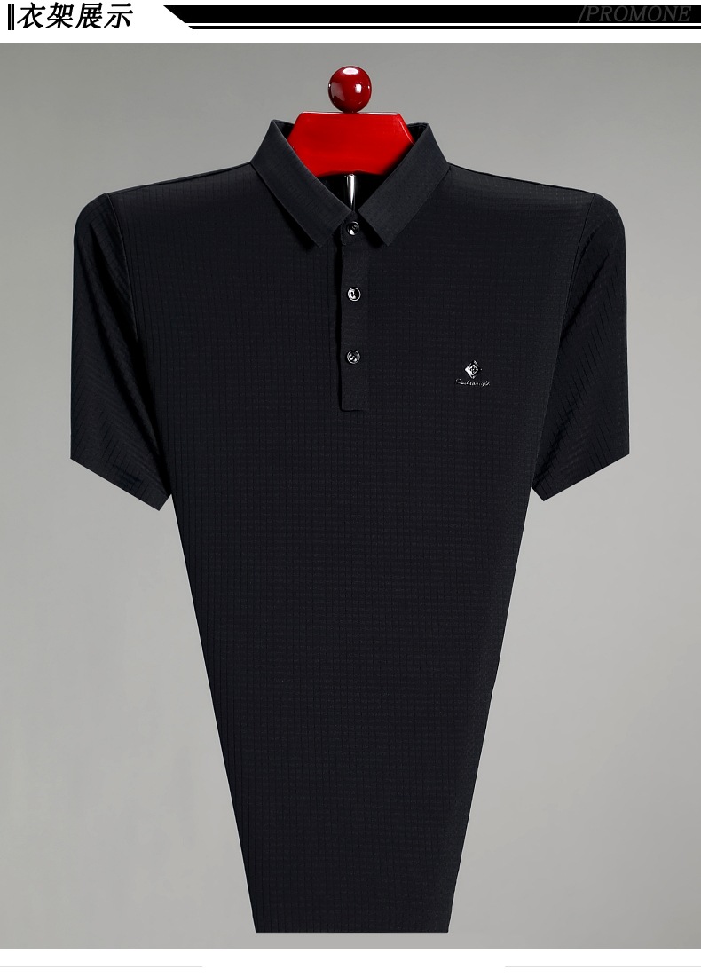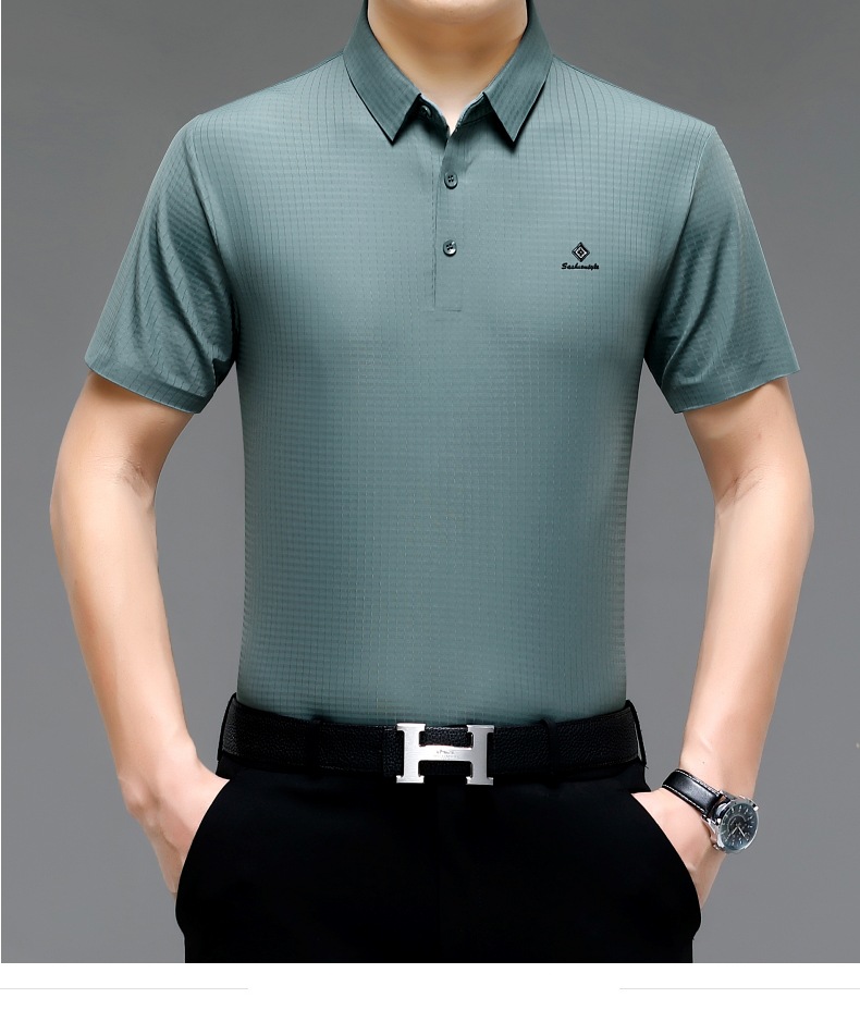 빅 브랜드 고급 중년 및 노인 여름 뽕나무 실크 주름 방지 남성용 티셔츠 반소매 최고 비즈니스 캐주얼 폴로 셔츠