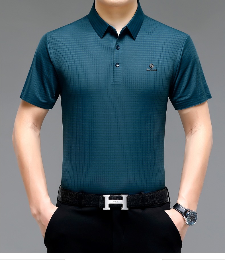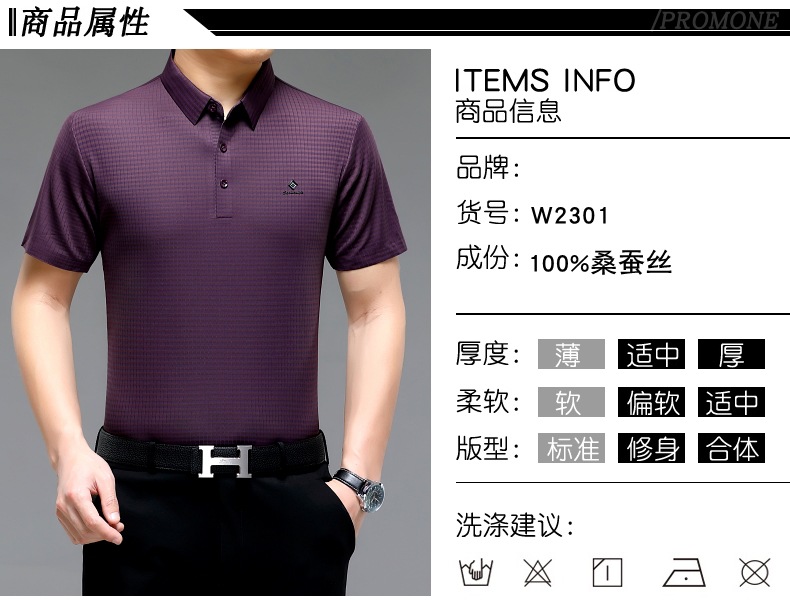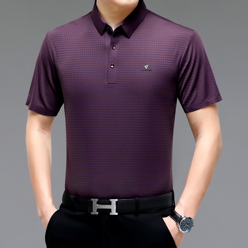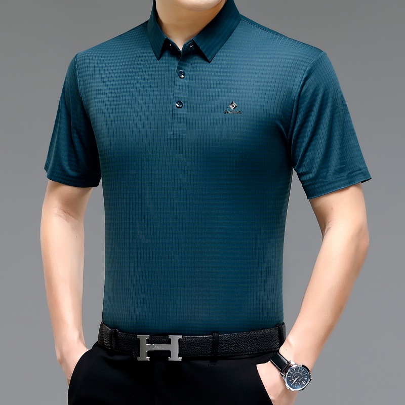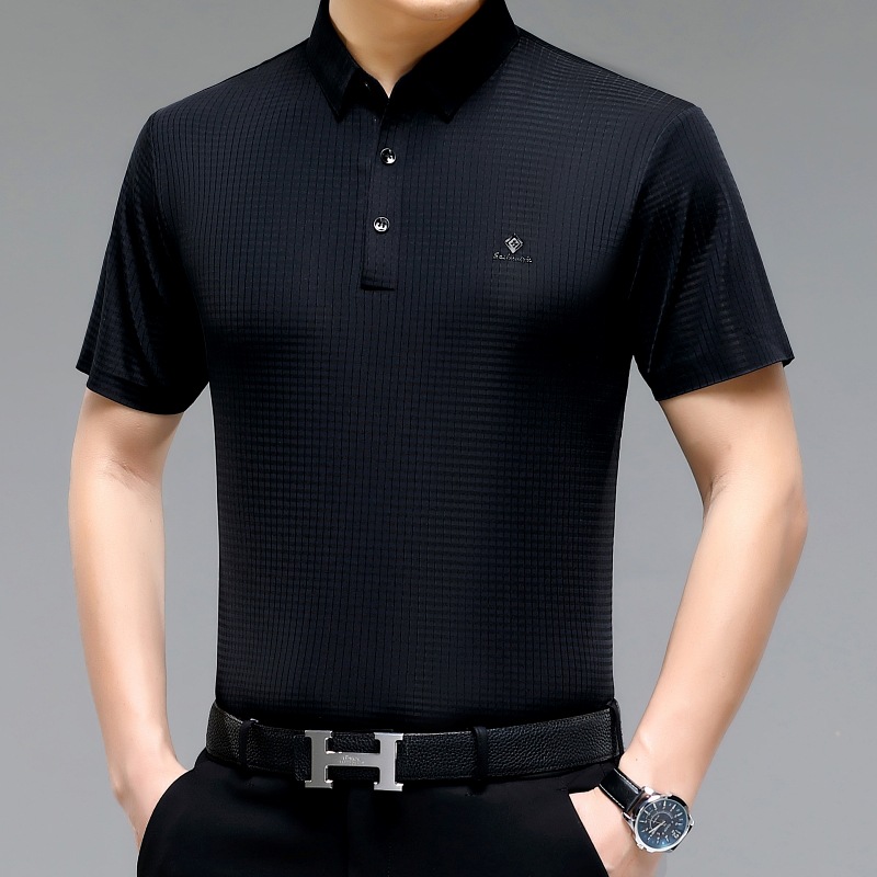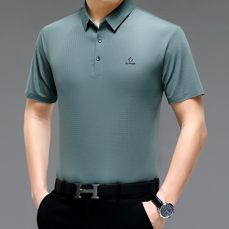 빅 브랜드 고급 중년 및 노인 여름 뽕나무 실크 주름 방지 남성용 티셔츠 반소매 최고 비즈니스 캐주얼 폴로 셔츠스토어 가기