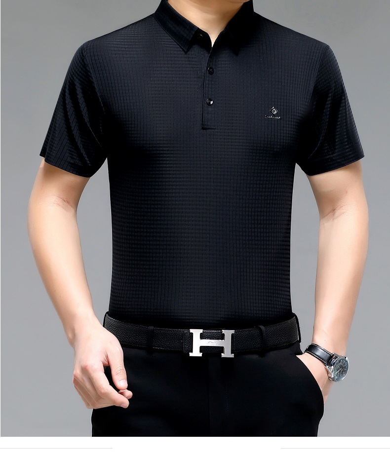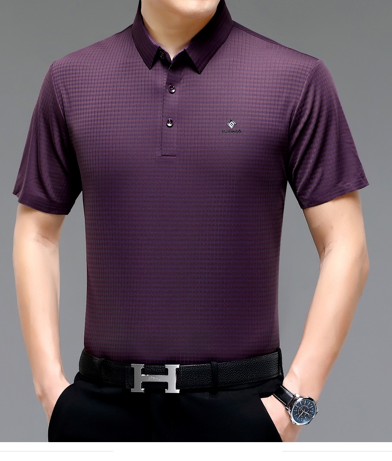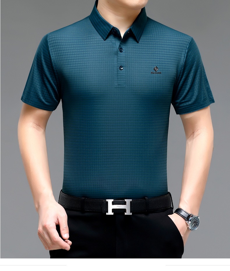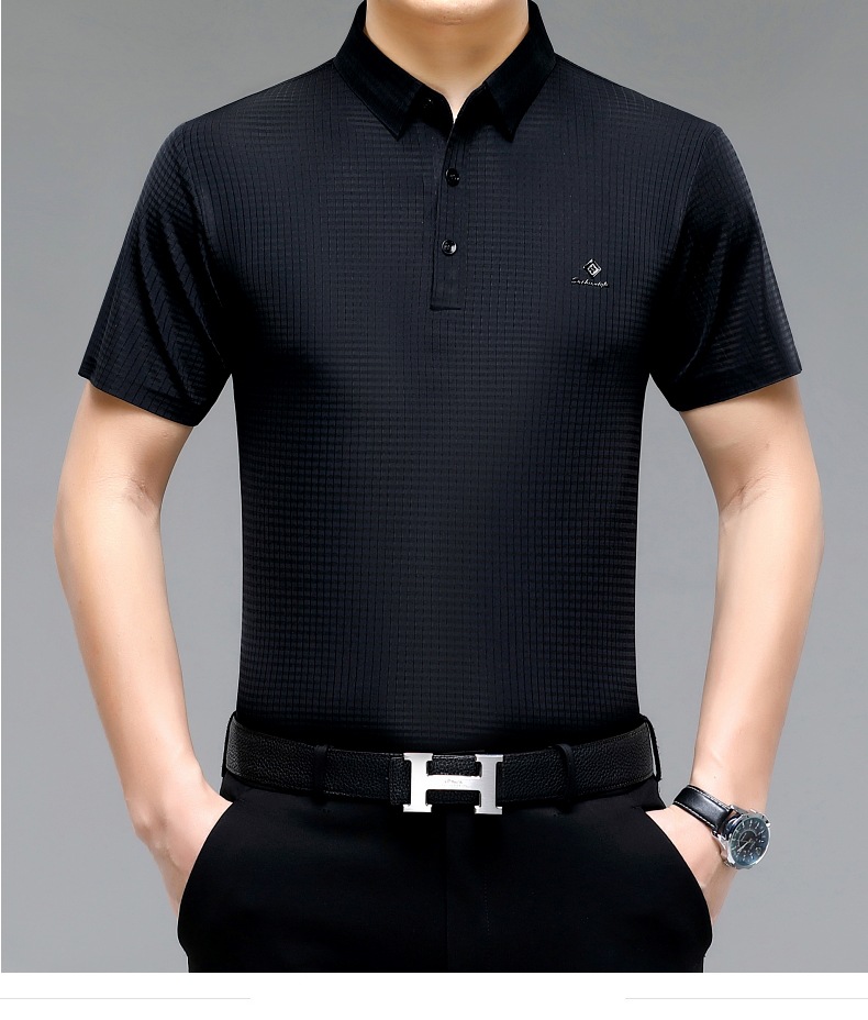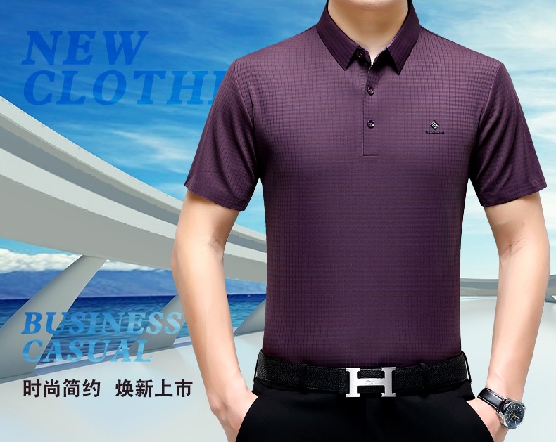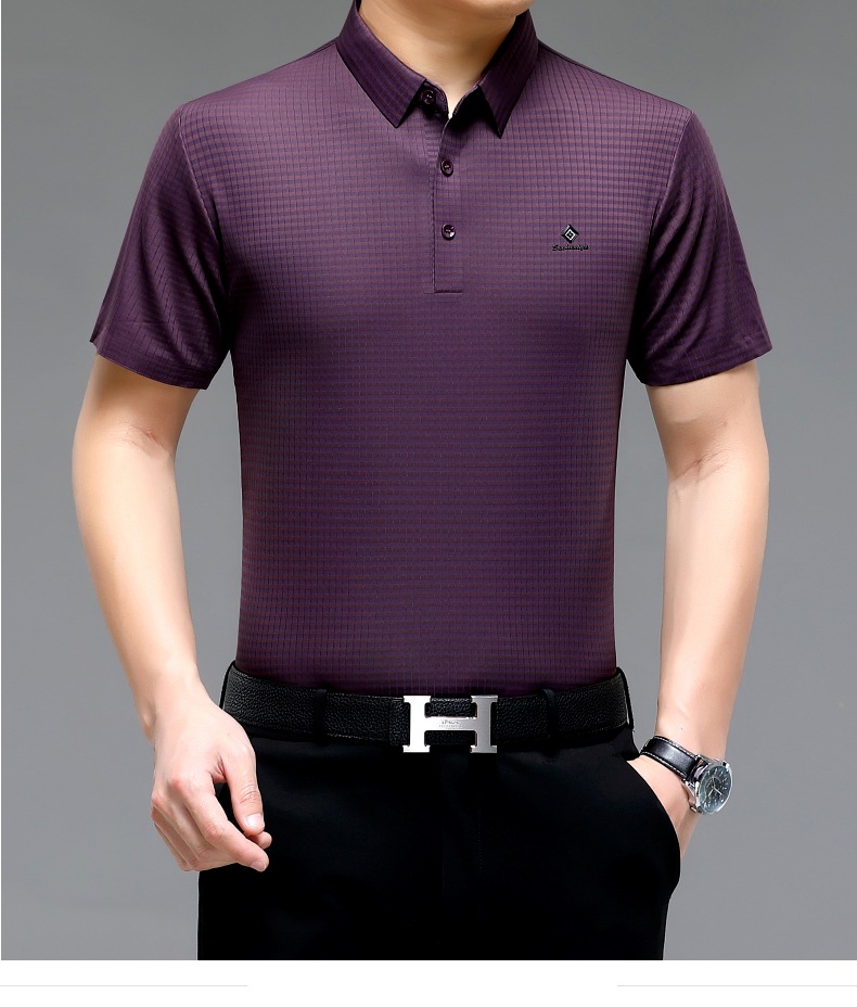 빅 브랜드 고급 중년 및 노인 여름 뽕나무 실크 주름 방지 남성용 티셔츠 반소매 최고 비즈니스 캐주얼 폴로 셔츠스토어 가기