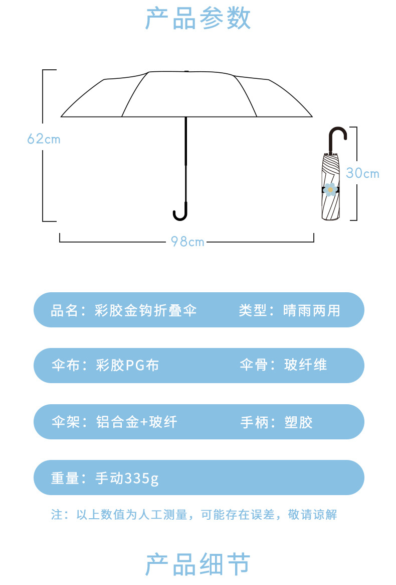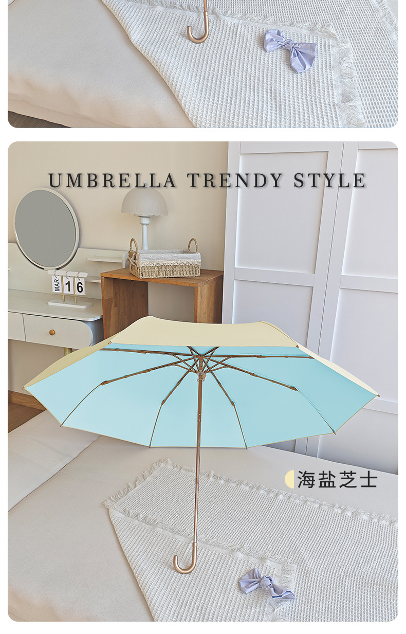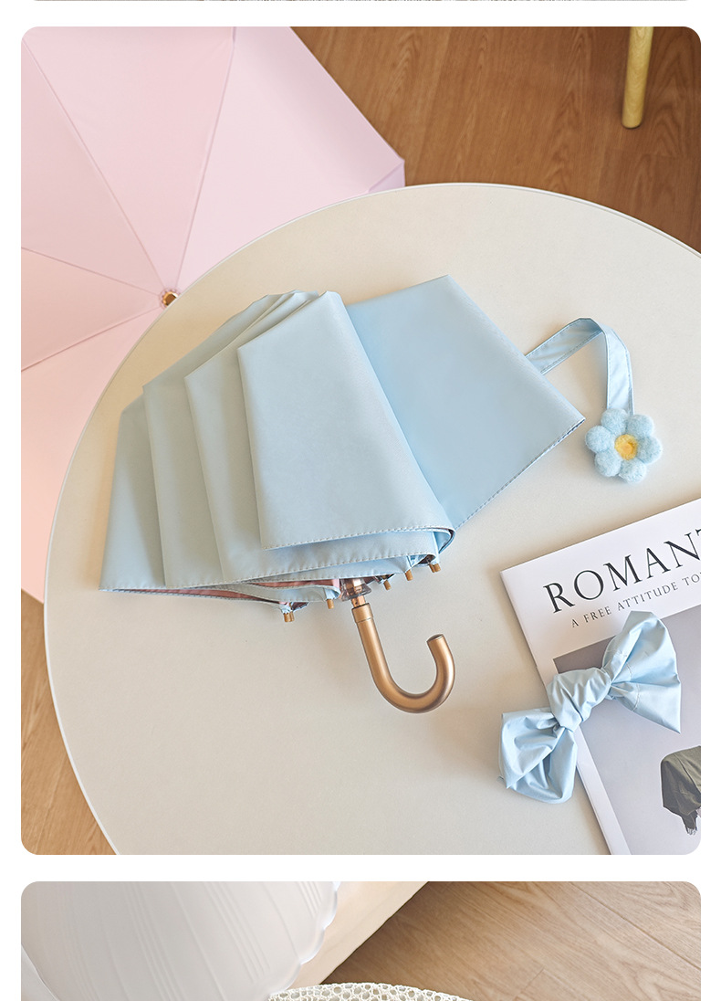 작은 금색 고리가 달린 컬러풀한 자외선 차단 우산, 자외선 차단 및 방수 기능, 두꺼운 소재, 심플하고 세련된 디자인, 야외용, 신선한 스타일