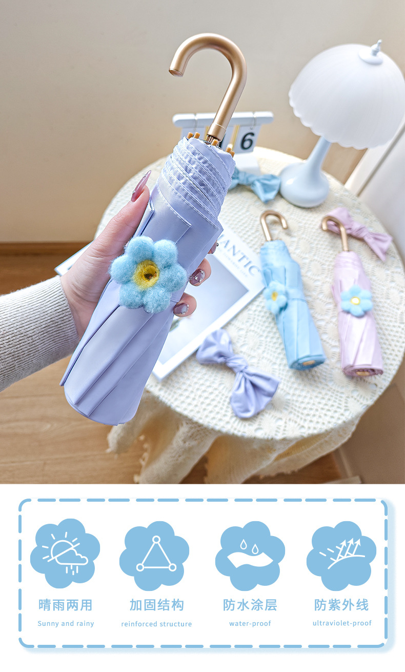 작은 금색 고리가 달린 컬러풀한 자외선 차단 우산, 자외선 차단 및 방수 기능, 두꺼운 소재, 심플하고 세련된 디자인, 야외용, 신선한 스타일스토어 가기