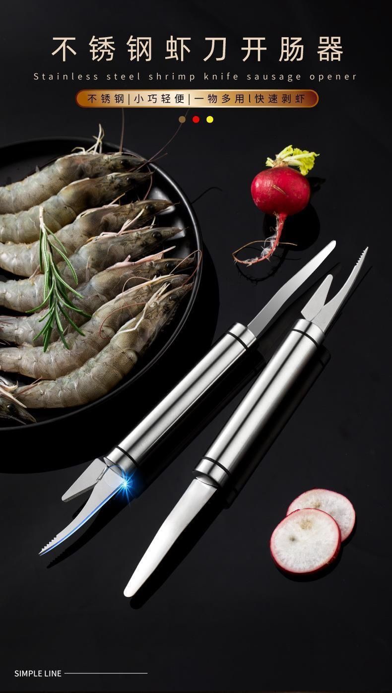 • 날카로운 칼날: 양면 다용도 [1 세트] 새우를 먹을 걱정이 없습니다. 스테인레스 스틸 새우 칼/새우 선 따기/새우 껍질 벗기기/물고기 비늘 긁기