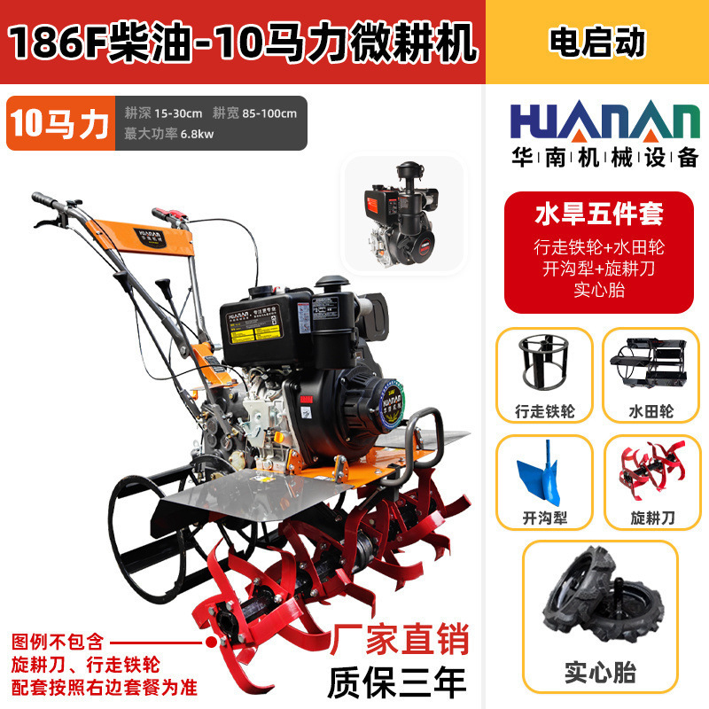 • 186F 디젤 하드 그라운드 4륜 구동(10마력) 전기 시동-물 및 가뭄 5종 세트