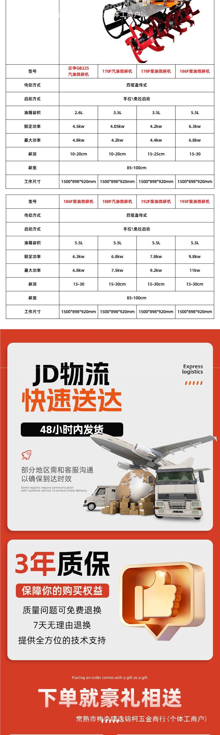 • 192F 디젤 하드 그라운드 4륜 구동(12마력) 전기 시동 건식 3종 세트