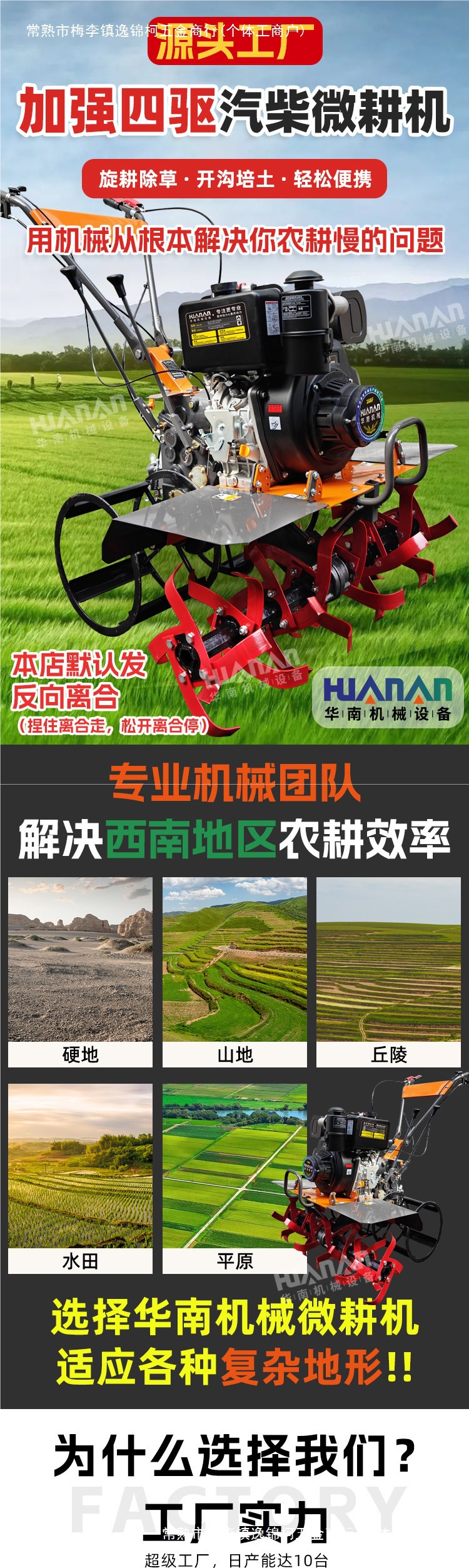 충칭 직접 4 륜 구동 마이크로 틸러 다기능 산 4 륜 구동 로터리 경운기 디젤 엔진 고마력 농업 경운기