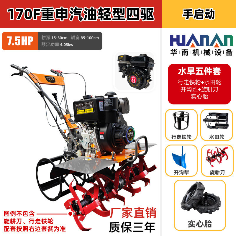• 192F 디젤 하드 4륜 구동(12마력) 전기 시동-물 및 가뭄 5종 세트
