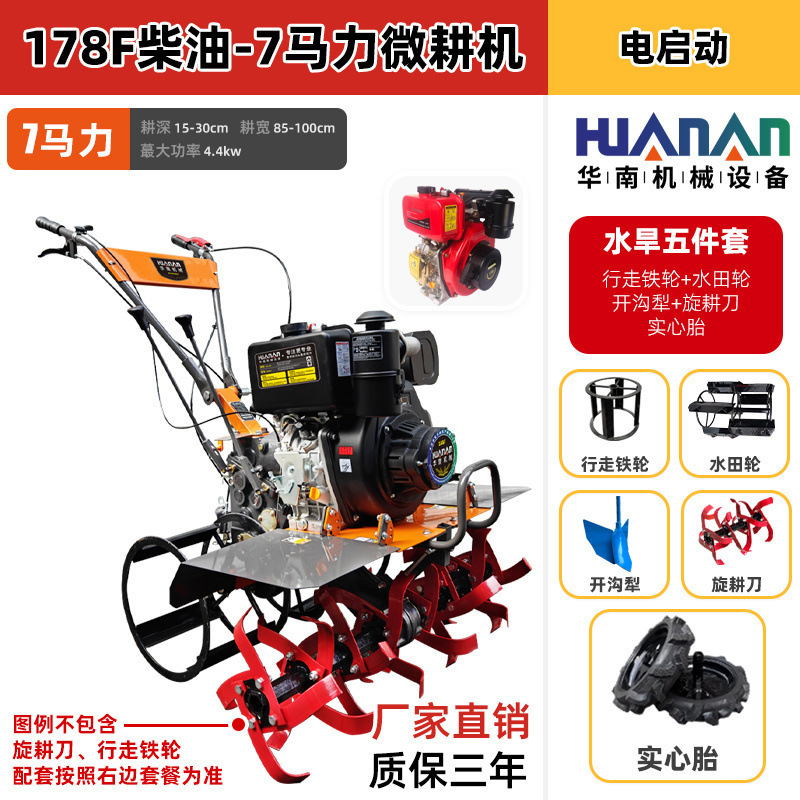 • 178F 디젤 경량 4륜 구동(7마력) 전기 시동-물 및 가뭄 5종 세트