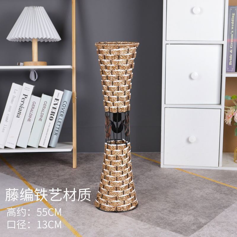 등나무 단철 간단한 대형 바닥 가짜 꽃 거실 꽃 냄비 말린 꽃 바닥 수지 스트레이트 꽃병 장식