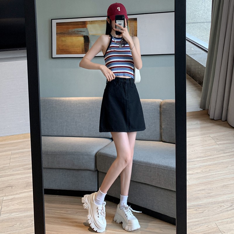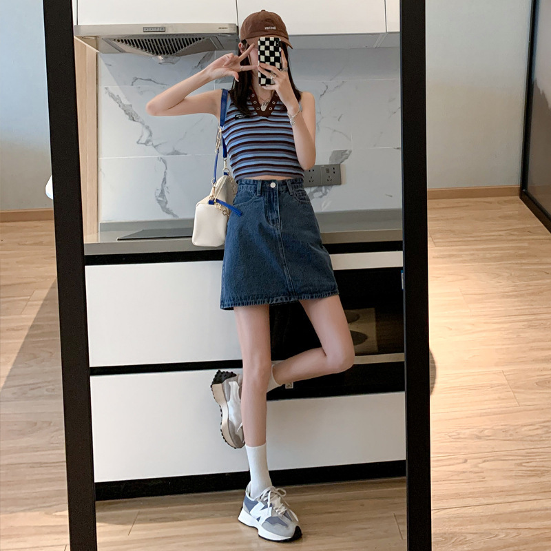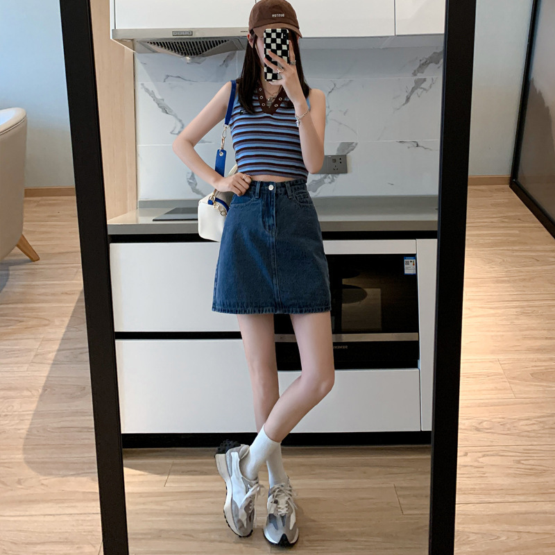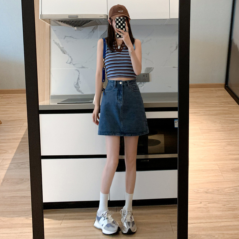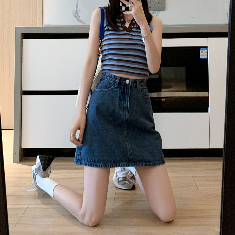 높은 허리 슬리밍 데님 스커트 여자 봄과 가을 새로운 플러스 사이즈 통통녀 엉덩이 커버 A-라인 스커트 올 매치 힙합 스커트