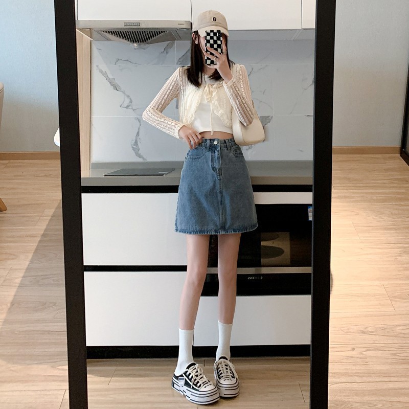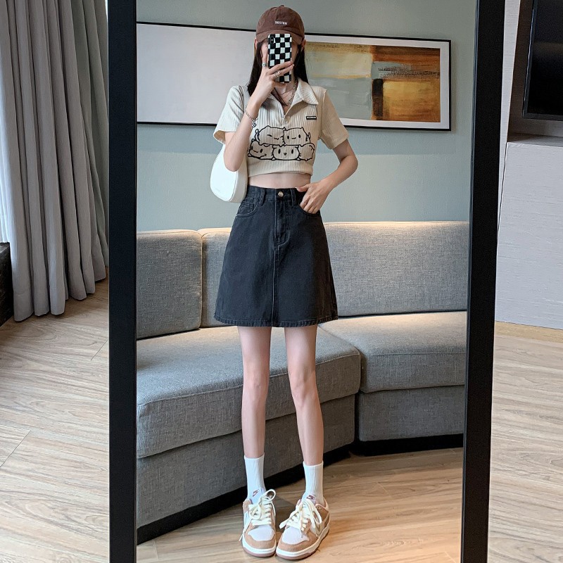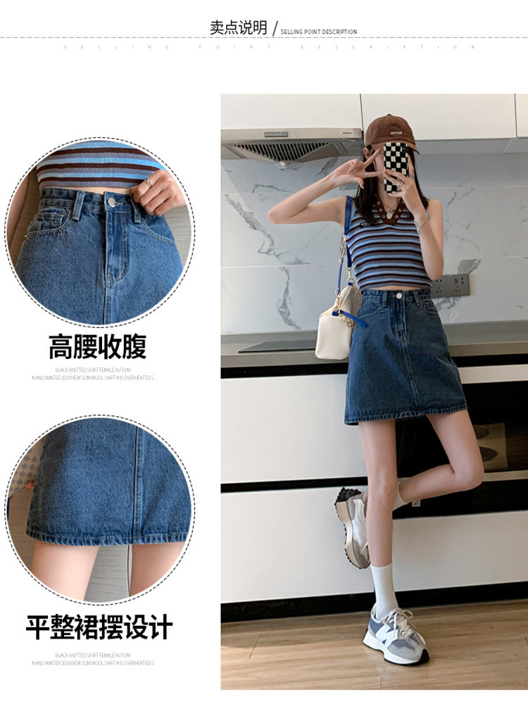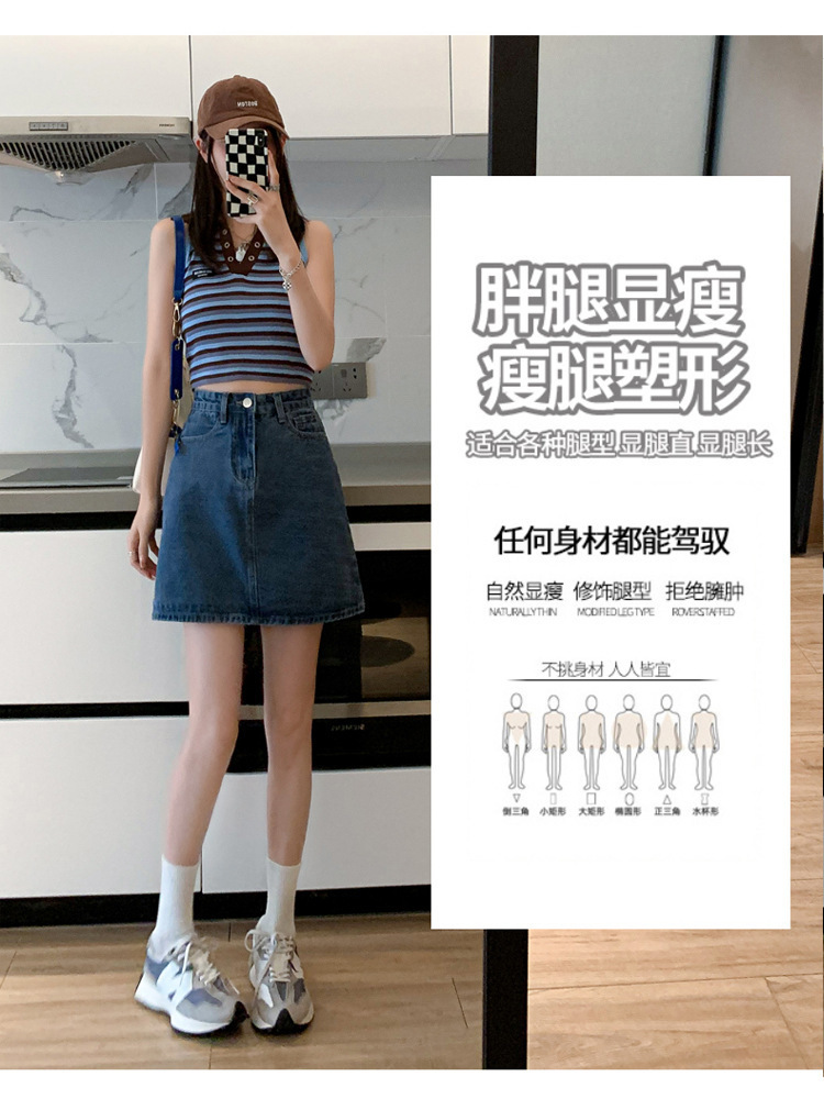 높은 허리 슬리밍 데님 스커트 여자 봄과 가을 새로운 플러스 사이즈 통통녀 엉덩이 커버 A-라인 스커트 올 매치 힙합 스커트스토어 가기