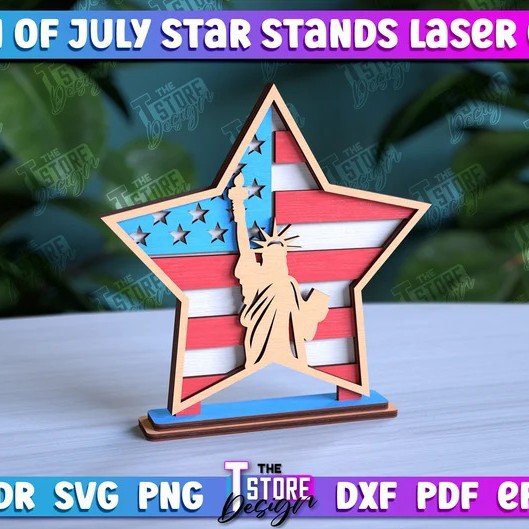 국경을 넘는 아마존 신제품 독립기념일 미국 별 모양 나무 선반 휴일 테이블 장식 책장 장식품스토어 가기