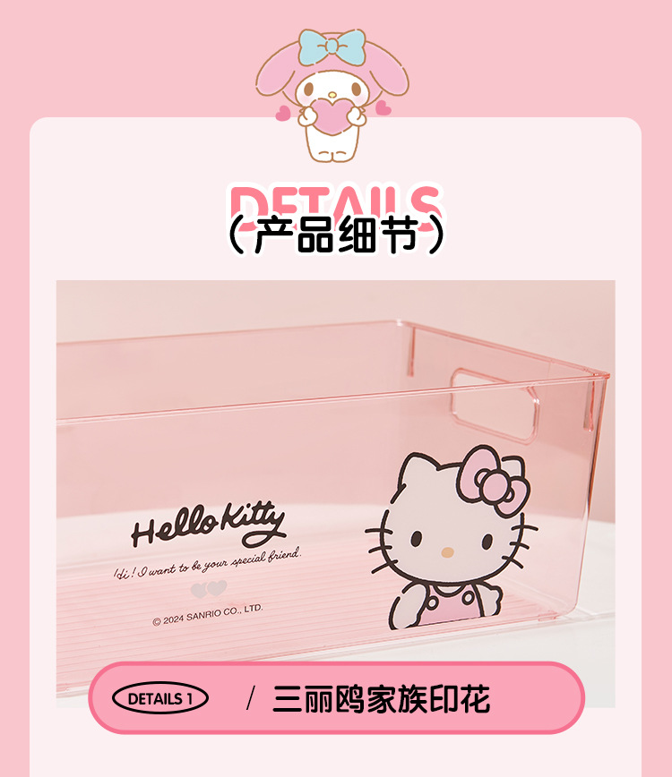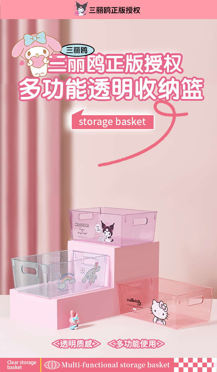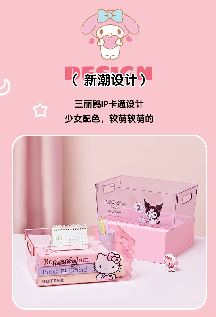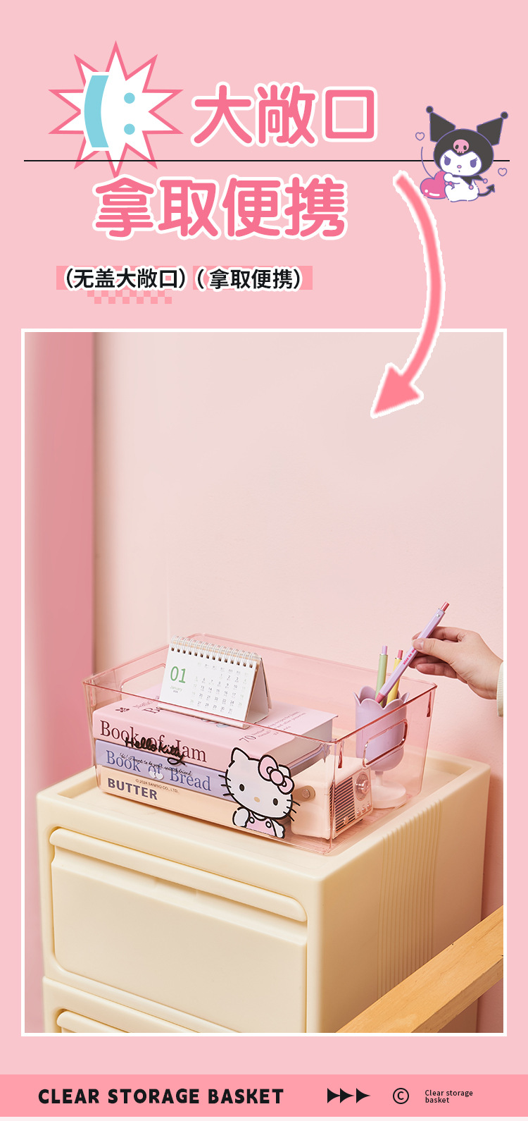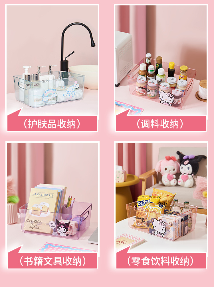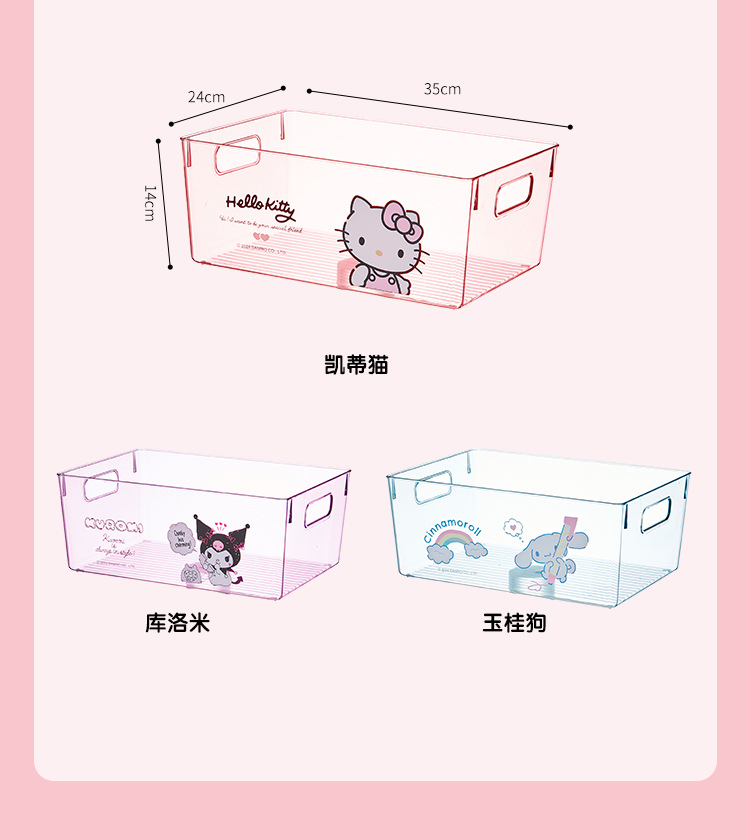 Sanrio Yunqu PET 높은 투명 스낵 보관 상자 데스크탑 거실 커피 테이블 마감 상자 기숙사 책상 보관