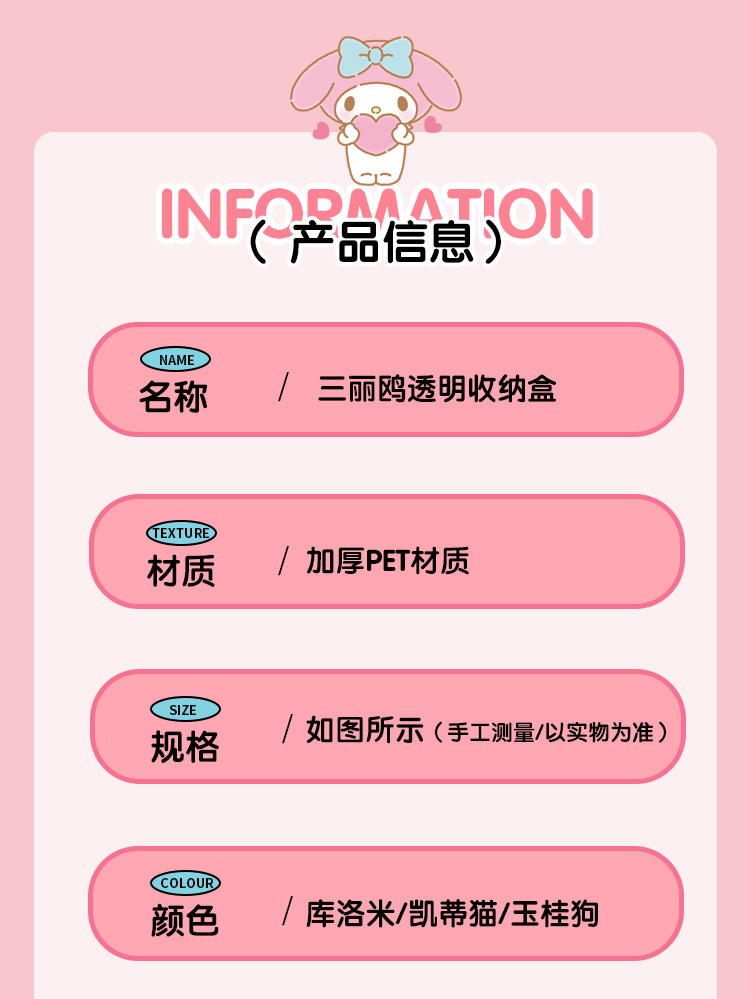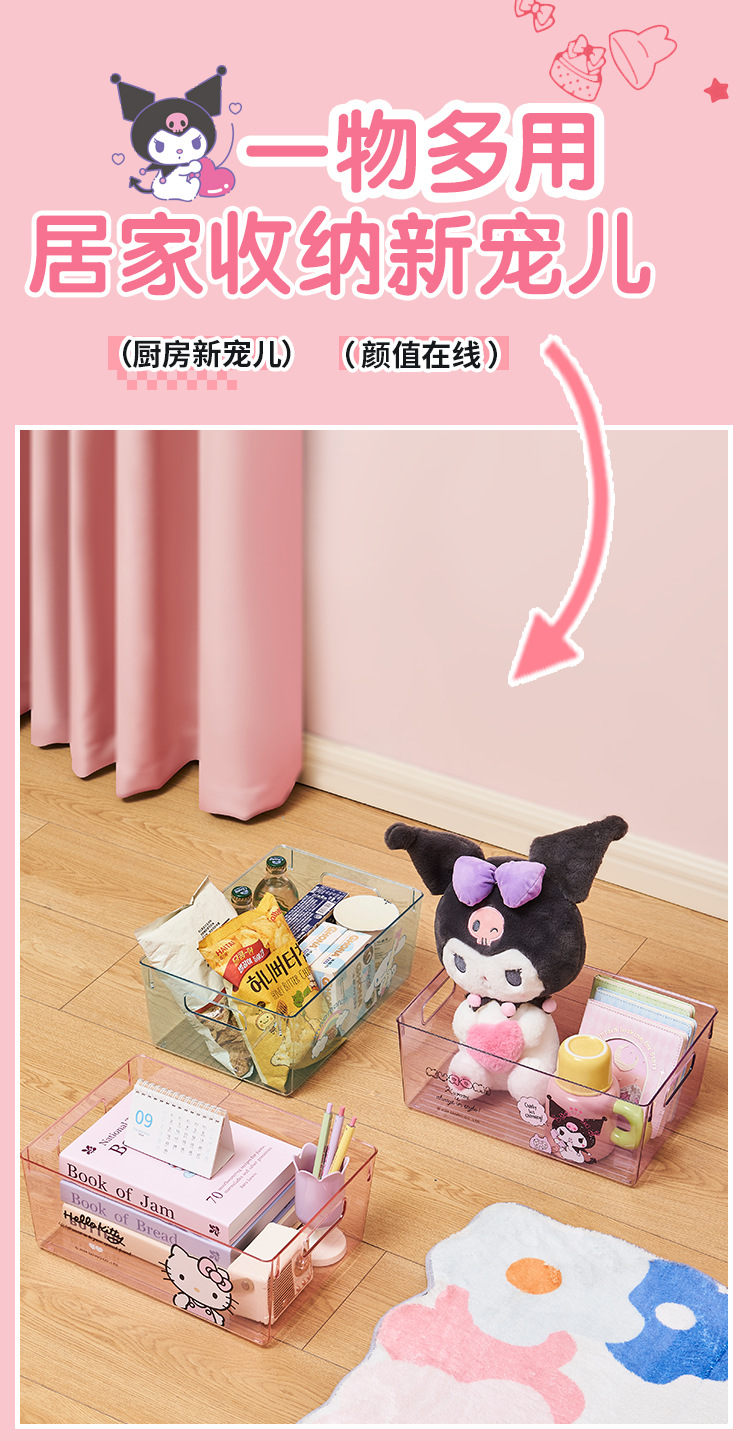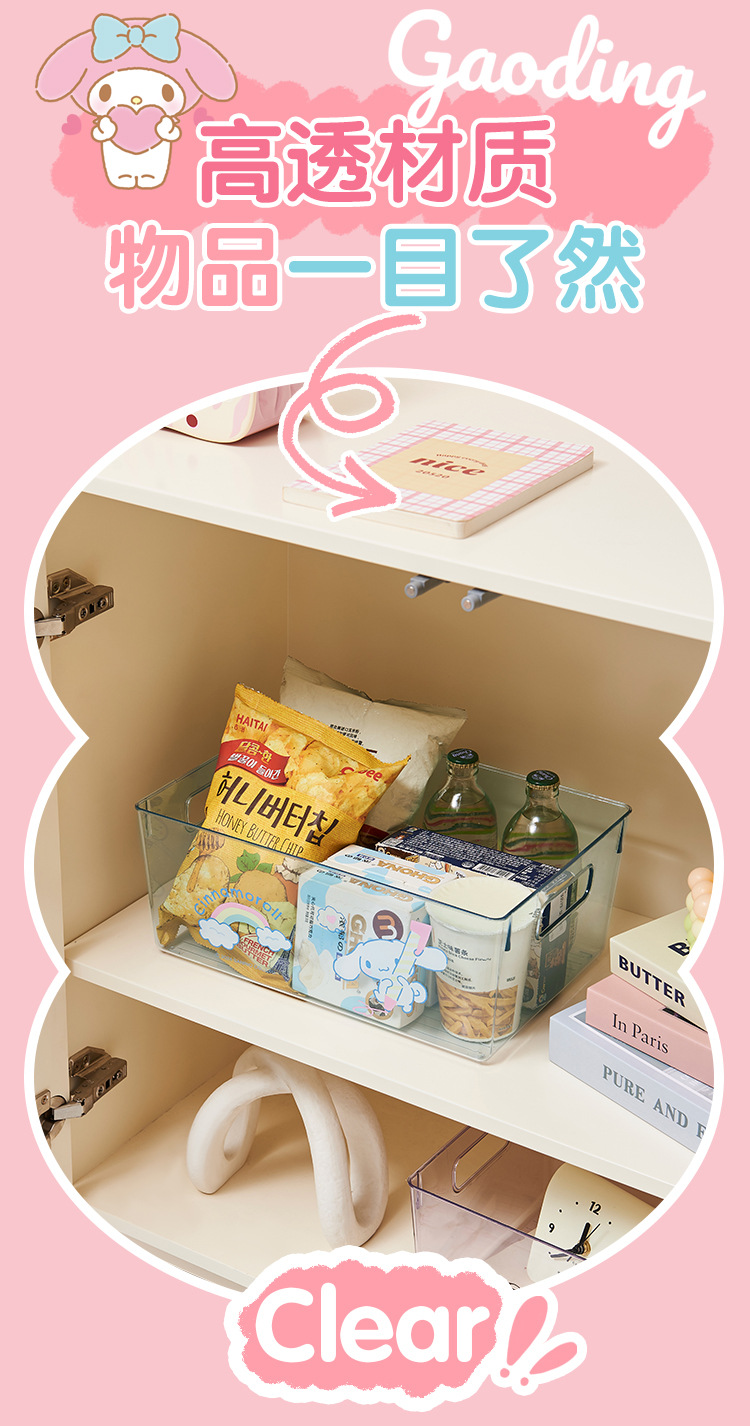 Sanrio Yunqu PET 높은 투명 스낵 보관 상자 데스크탑 거실 커피 테이블 마감 상자 기숙사 책상 보관스토어 가기