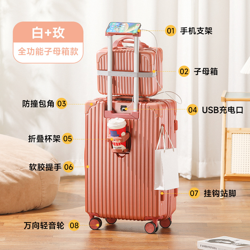 다기능 트렁크 남성과 여성의 대용량 여행 가방 범용 무음 비밀번호 탑승 상자 내구성 트롤리 케이스
