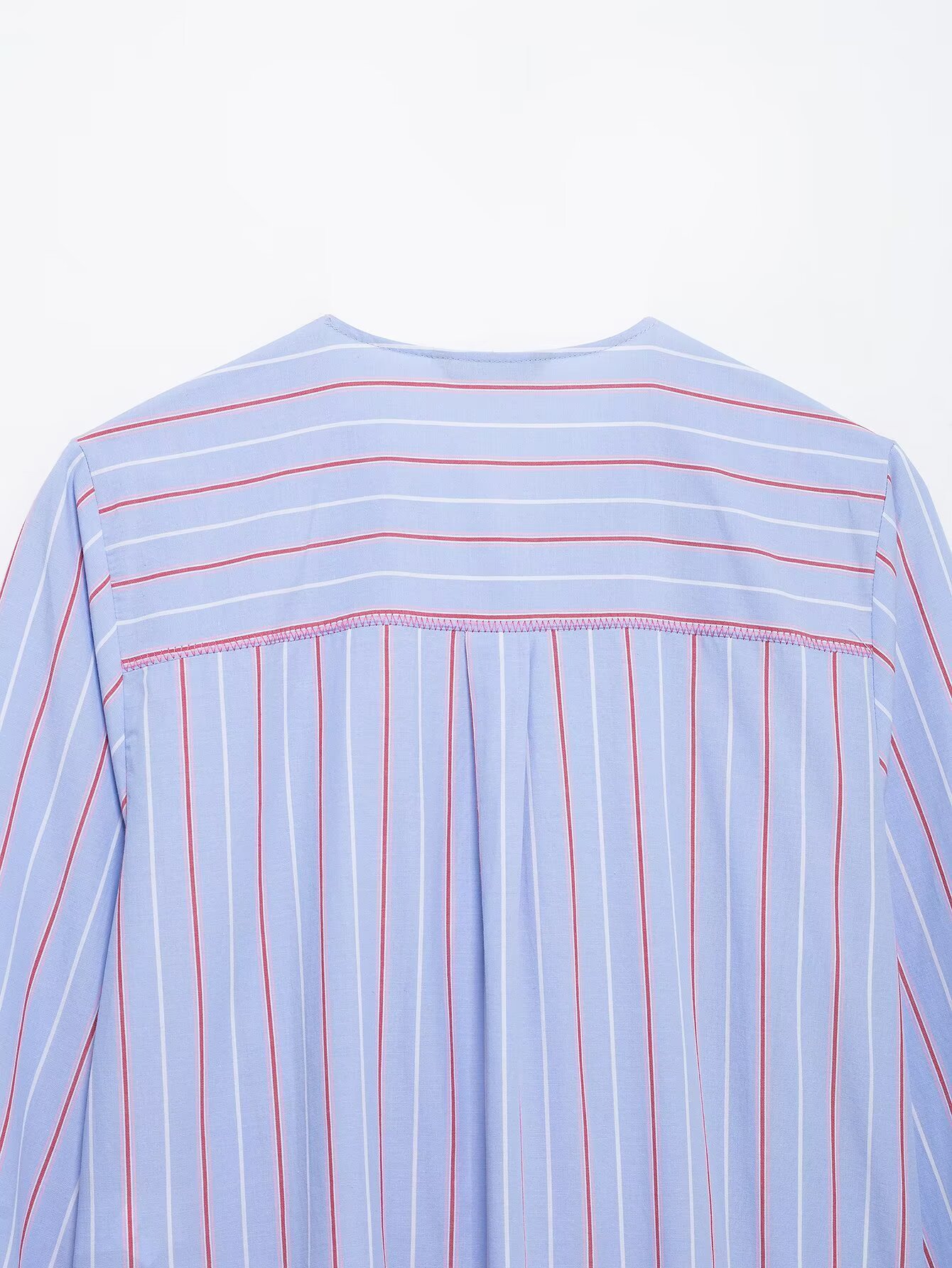 2025 봄 새로운 유럽과 미국의 국경 여성 패션 활 줄무늬 포플린 셔츠 w085 235282