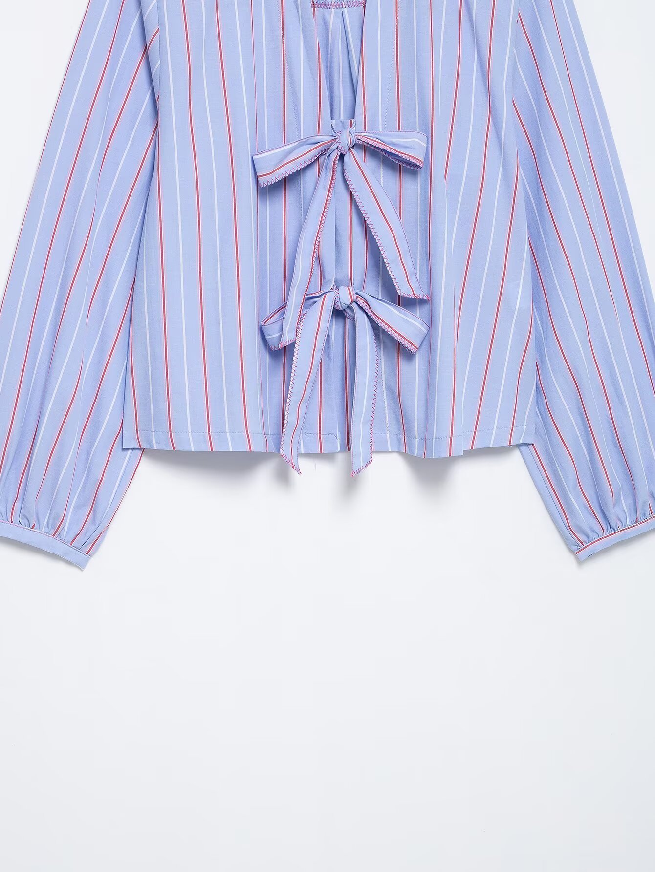 2025 봄 새로운 유럽과 미국의 국경 여성 패션 활 줄무늬 포플린 셔츠 w085 235282스토어 가기