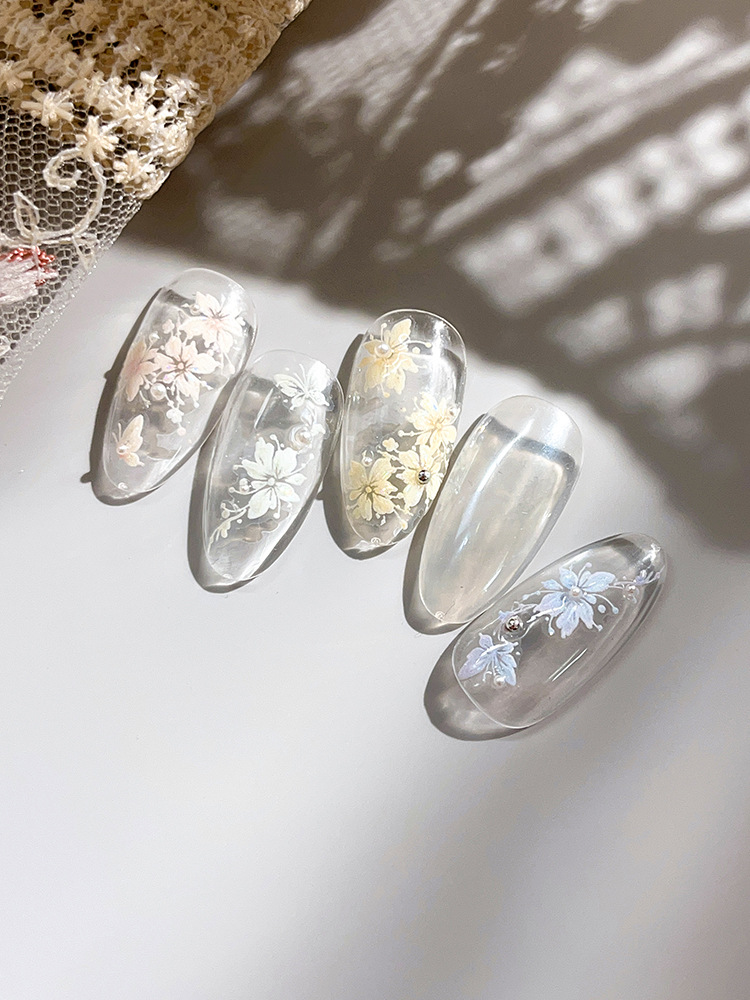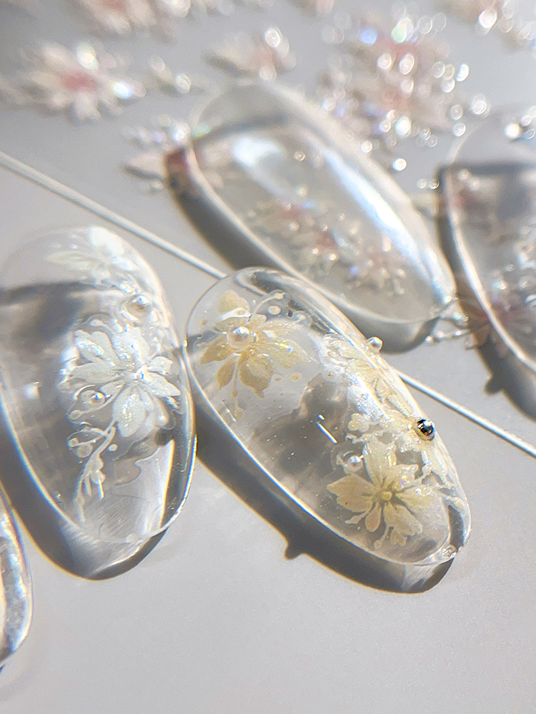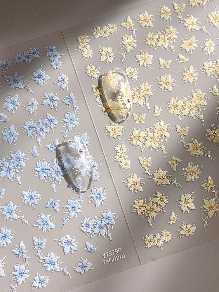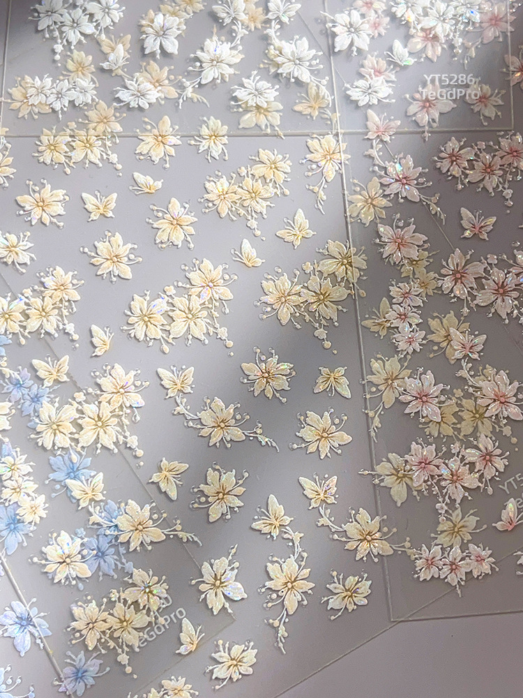 YITU 개미 그림 쉘 라이트 젤리 꽃 네일 아트 스티커 귀여운 플래시 달콤한 순수 장식 스티커 YT5286