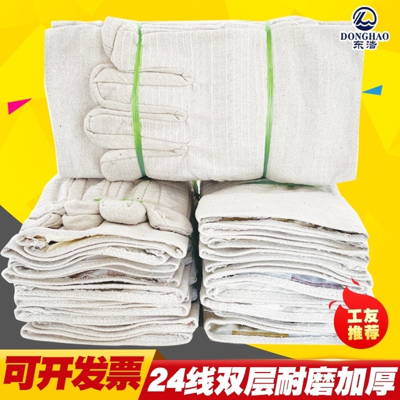 더블 레이어 캔버스 24 와이어 완전 라인 노동 보호 장갑 내구성 내마모성 건설 현장 용접기 기계 노동 보호스토어 가기
