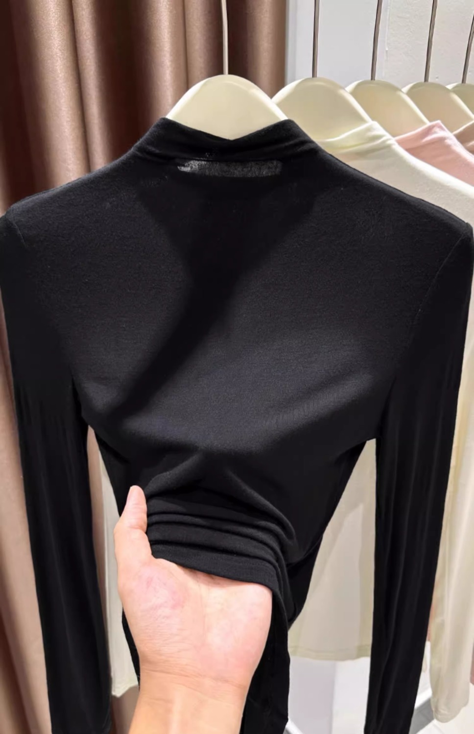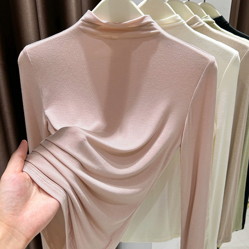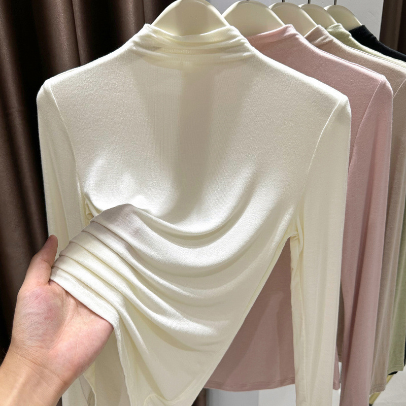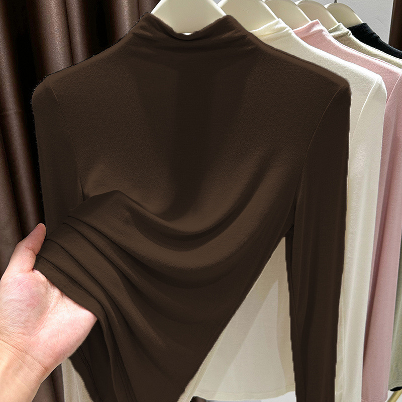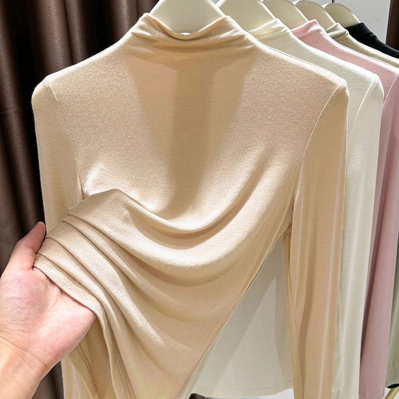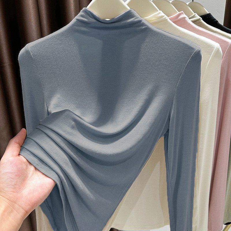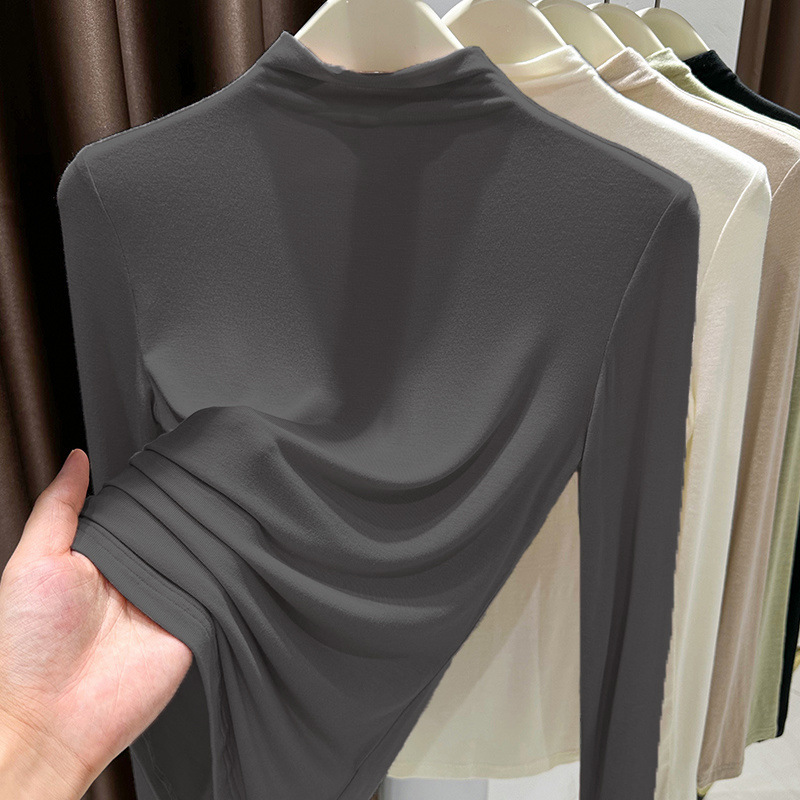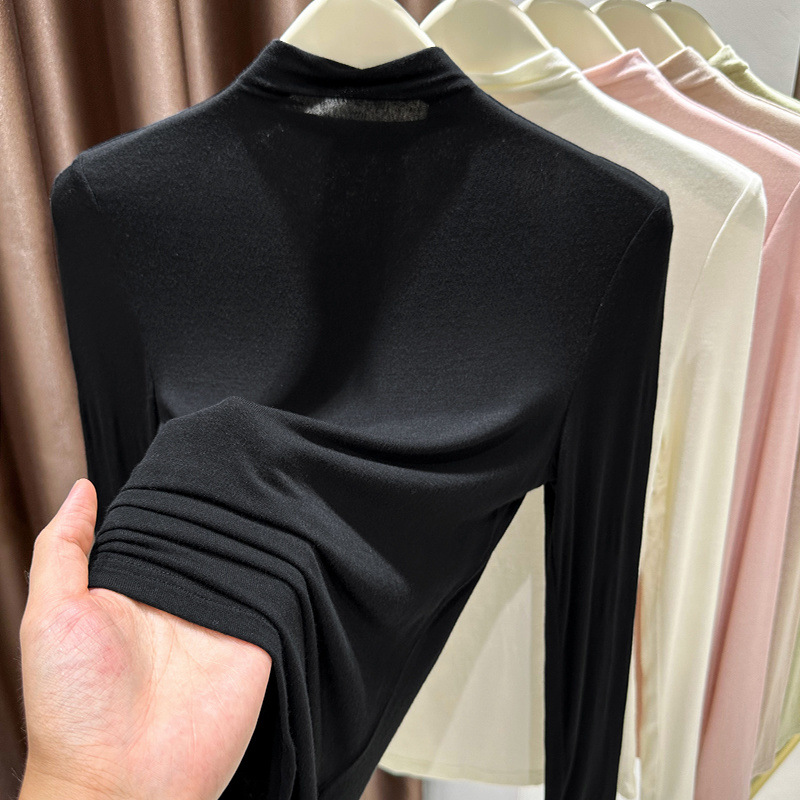 모달 봄과 가을 반 높이 칼라 새로운베이스 탑 여성 가을 및 겨울 슬림핏 올 매치 티셔츠 스타일 긴팔 샤넬 스타일
