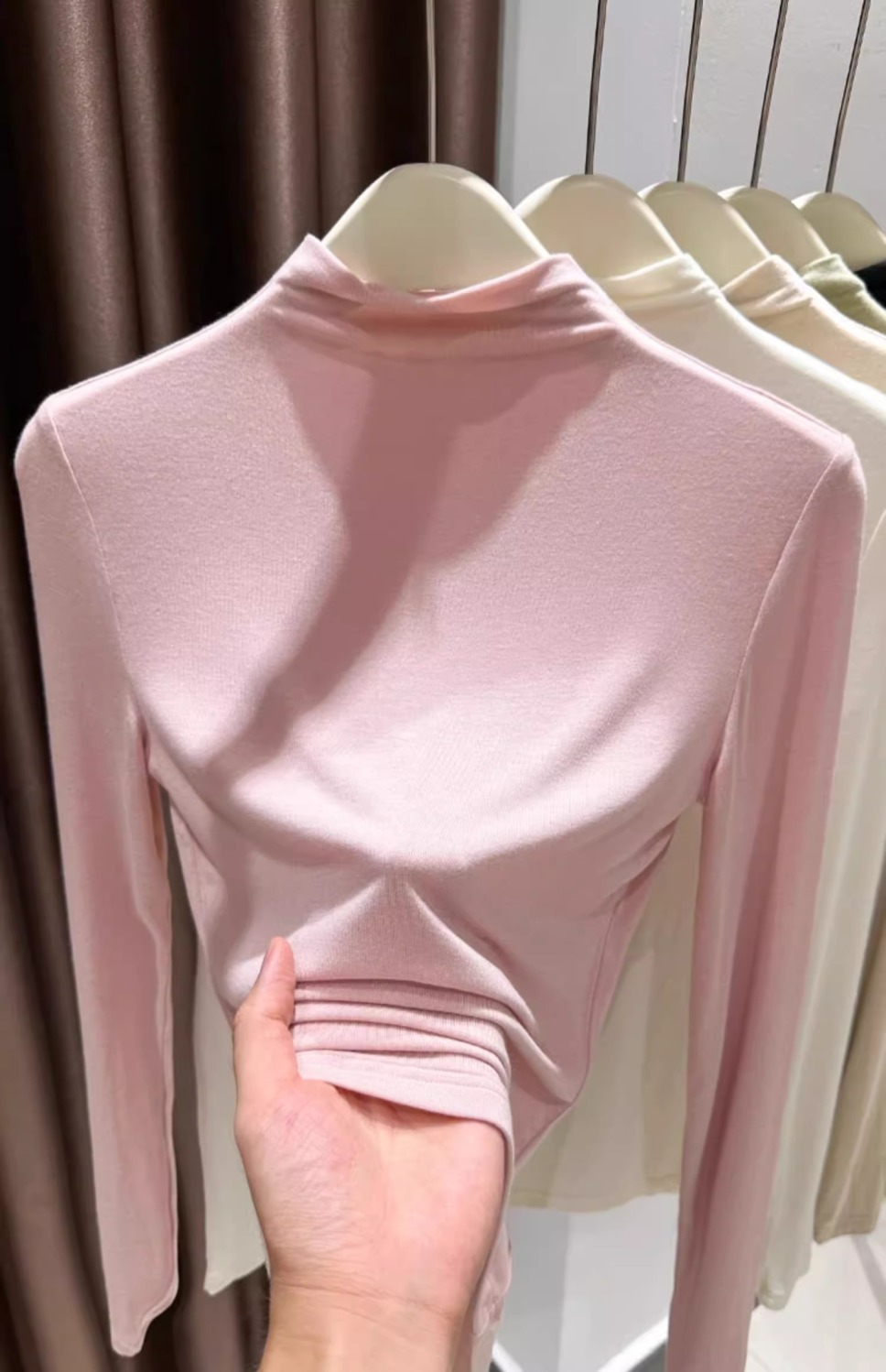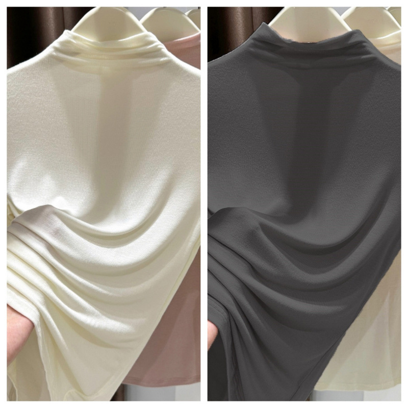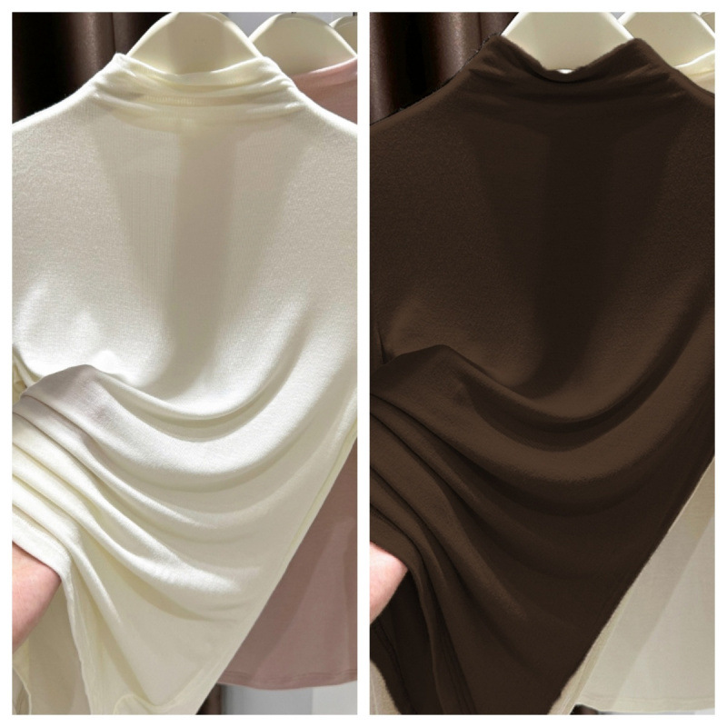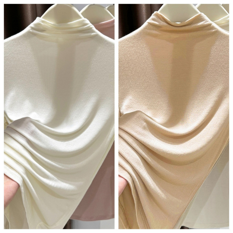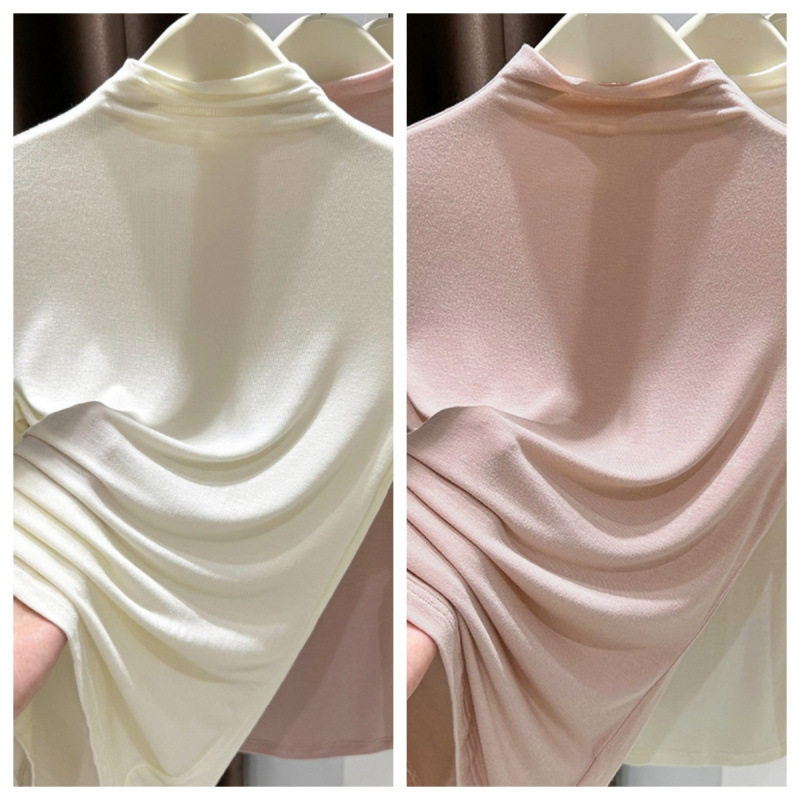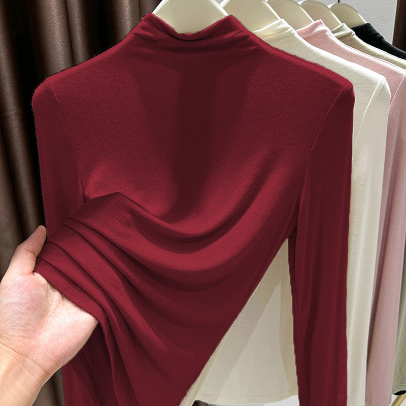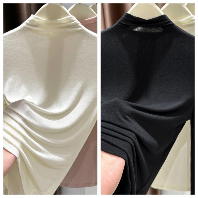 모달 봄과 가을 반 높이 칼라 새로운베이스 탑 여성 가을 및 겨울 슬림핏 올 매치 티셔츠 스타일 긴팔 샤넬 스타일
