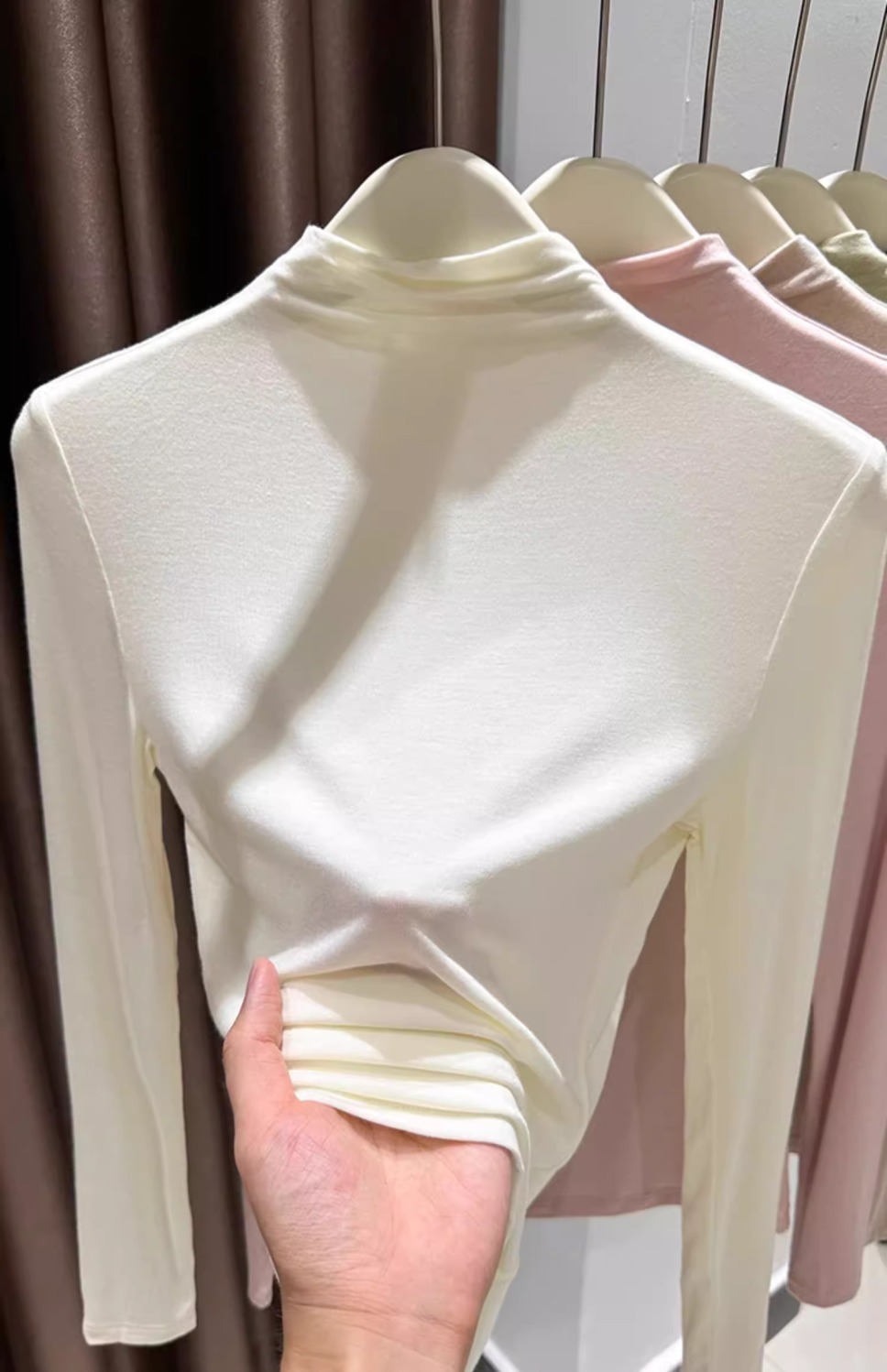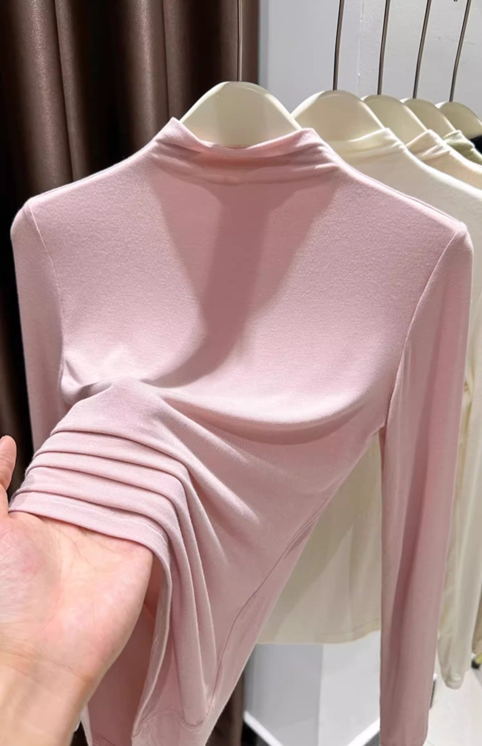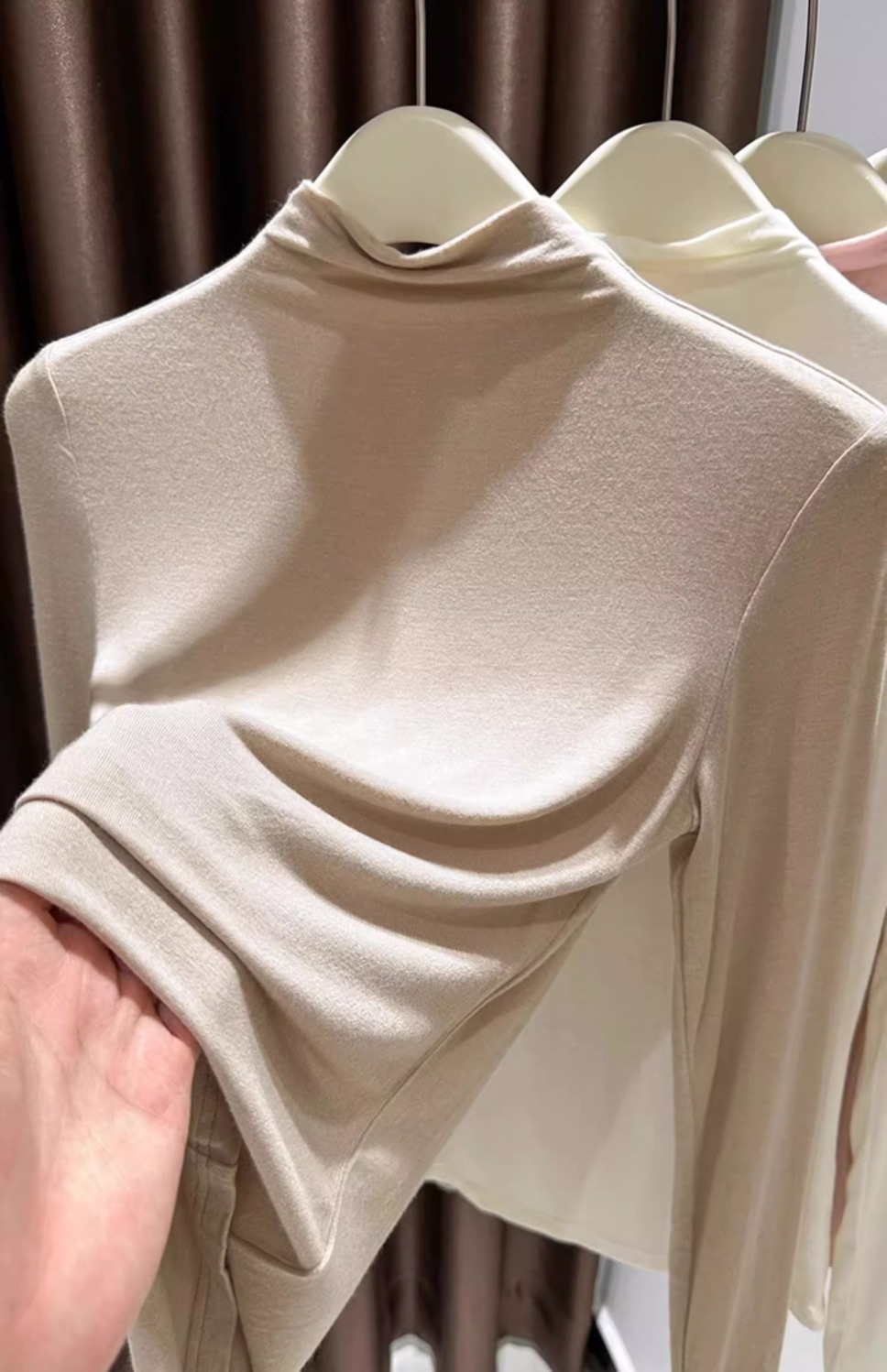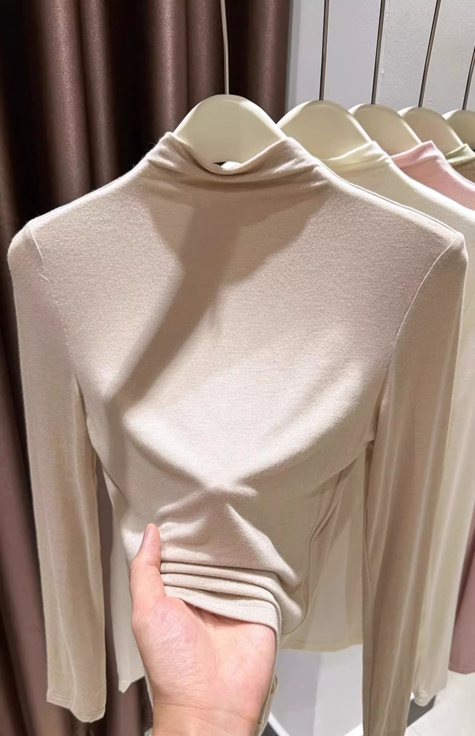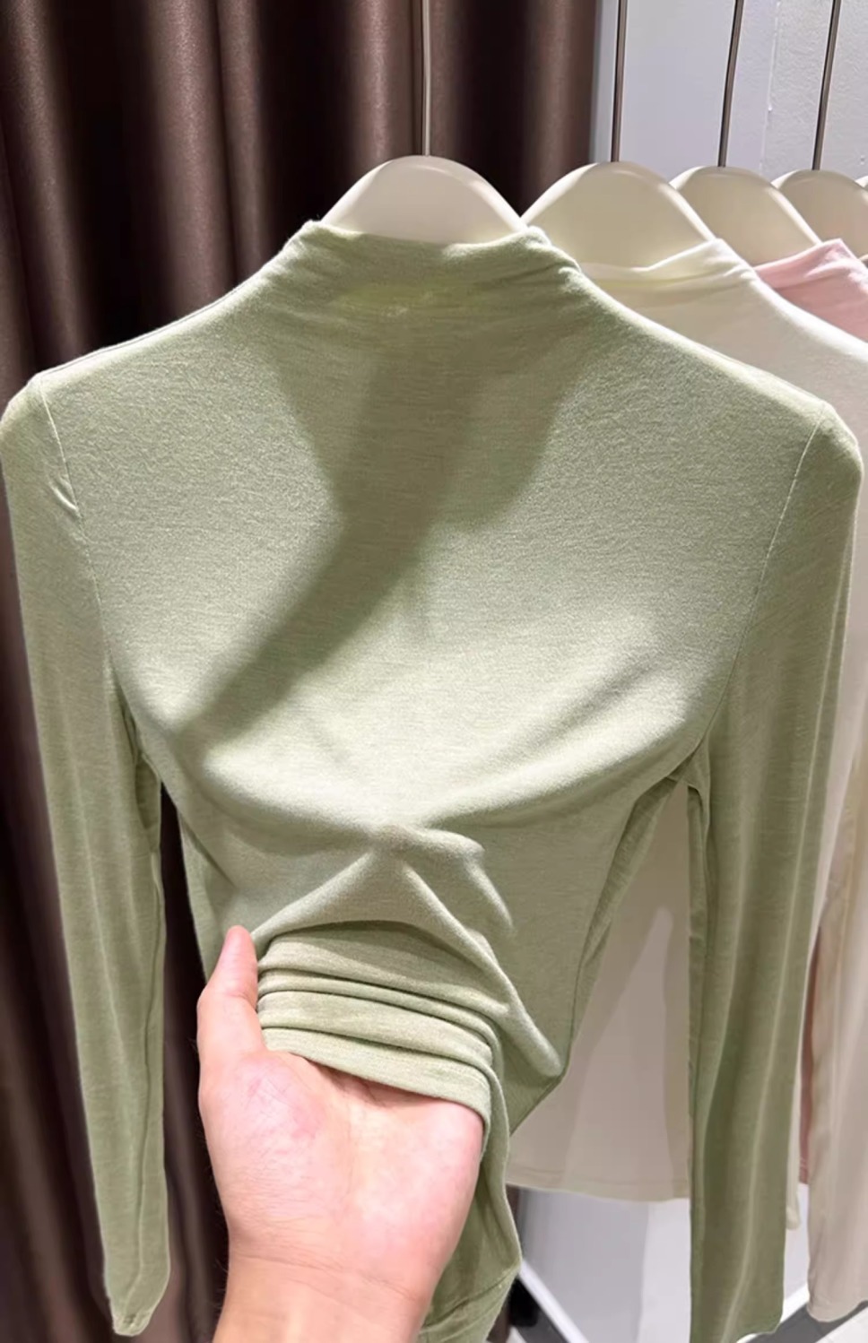 모달 봄과 가을 반 높이 칼라 새로운베이스 탑 여성 가을 및 겨울 슬림핏 올 매치 티셔츠 스타일 긴팔 샤넬 스타일
