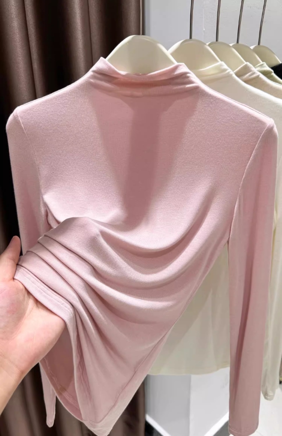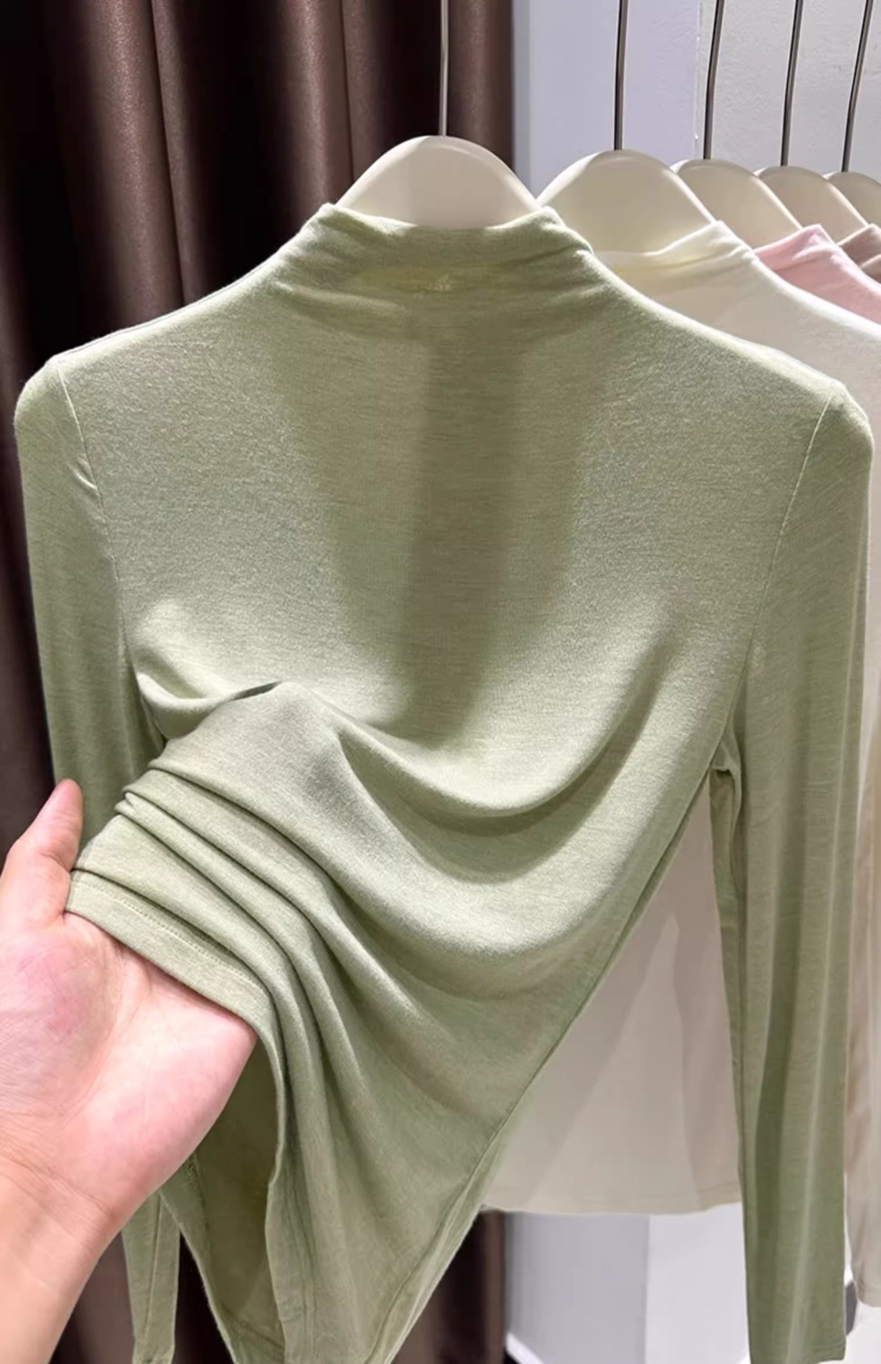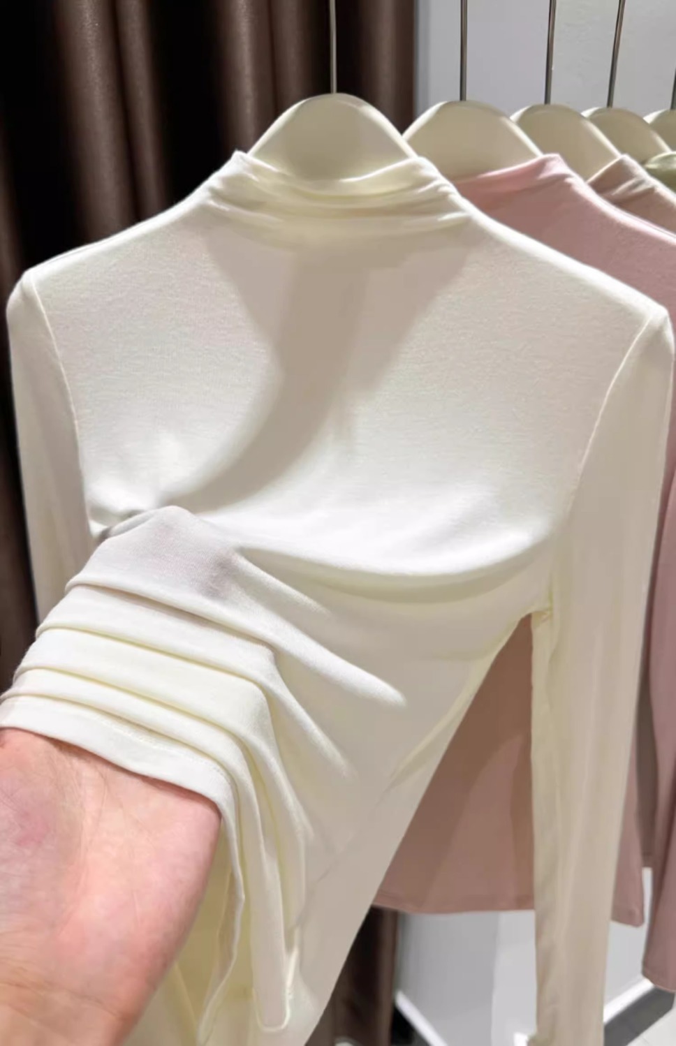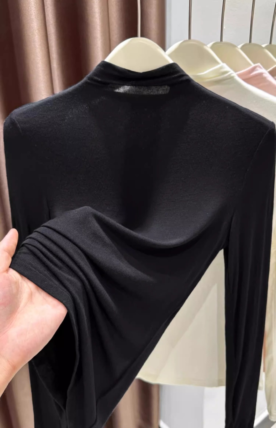모달 봄과 가을 반 높이 칼라 새로운베이스 탑 여성 가을 및 겨울 슬림핏 올 매치 티셔츠 스타일 긴팔 샤넬 스타일