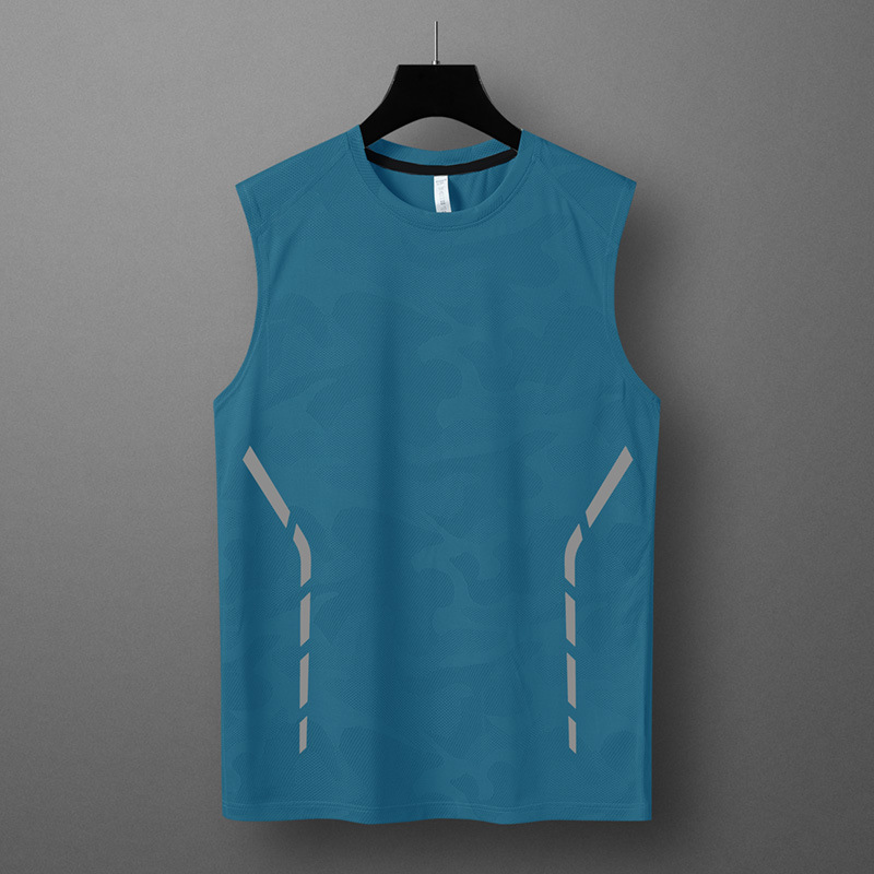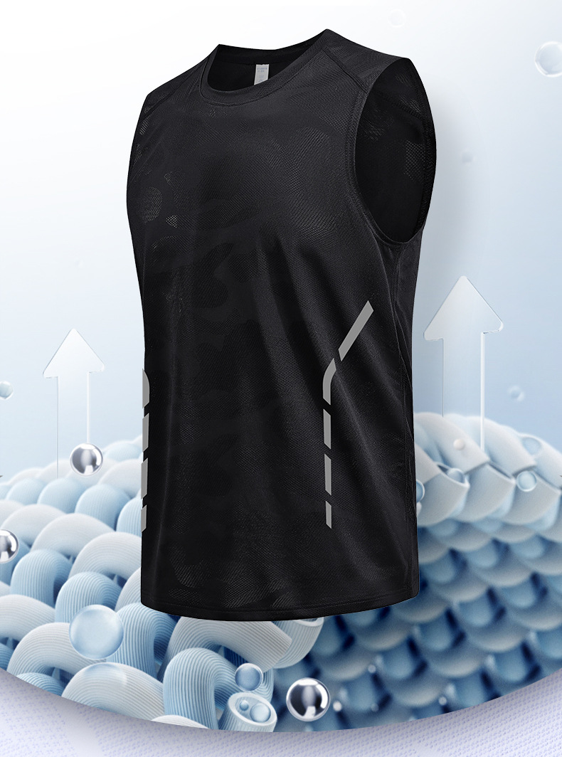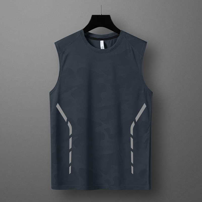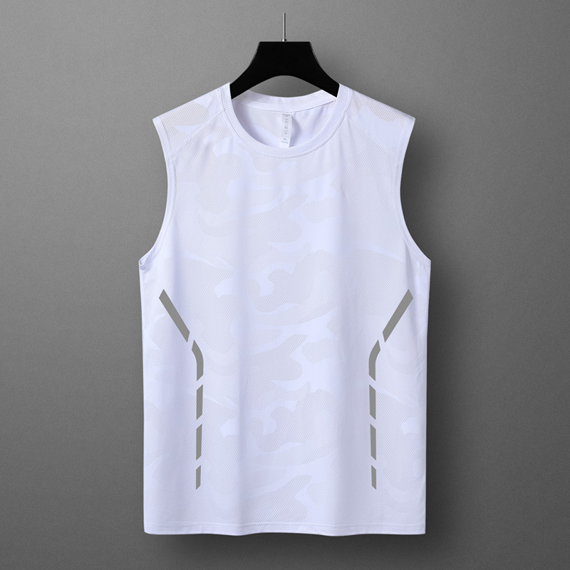 여름 새로운 스포츠 피트니스 빠른 건조 소매 티셔츠 남성용 얇은 트렌디 브랜드 아이스 실크 티셔츠 통기성 빠른 건조 조끼스토어 가기