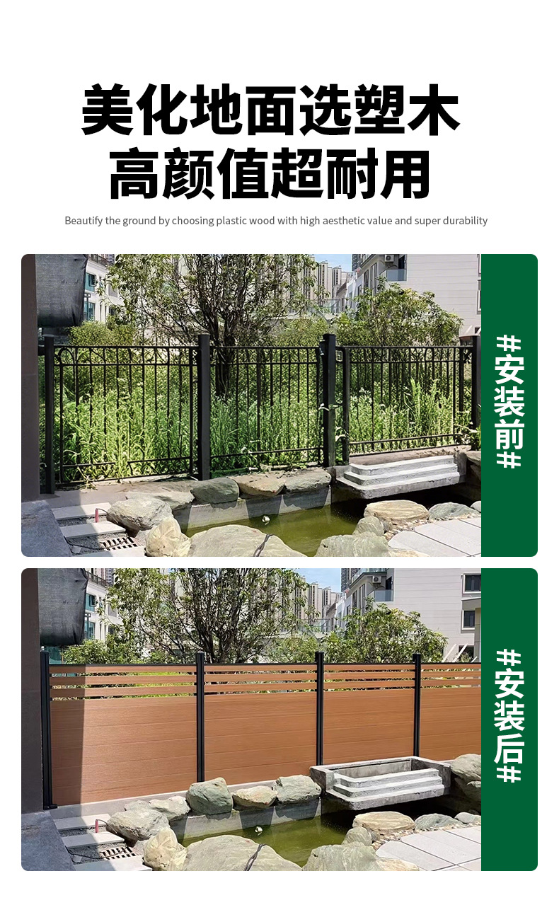 플라스틱 목재 울타리 부식 방지 목재 울타리 야외 정원 울타리 목재 플라스틱 울타리 안뜰 작은 안뜰 테라스 꽃 수염 나무 울타리