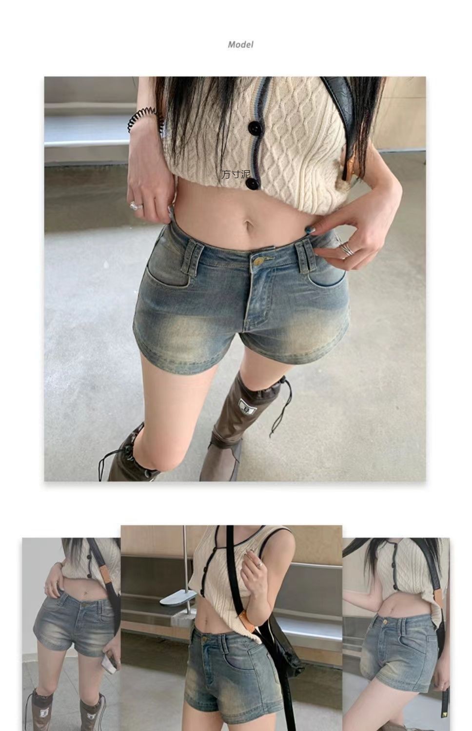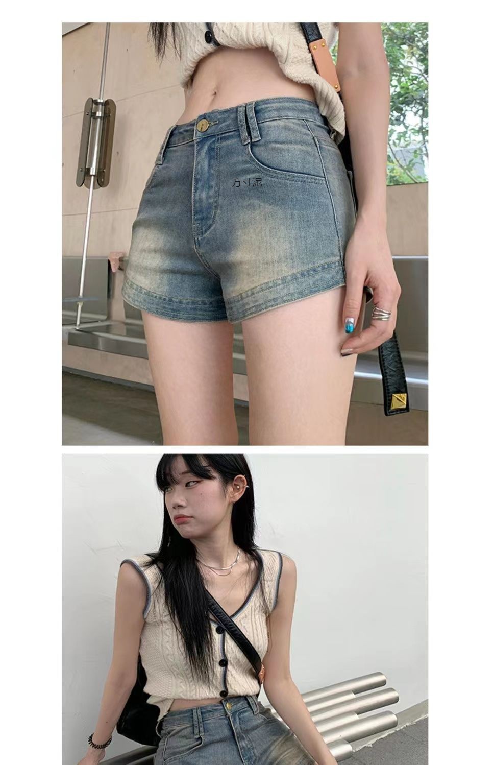 데님 반바지 여성 여름 레트로 블루 올 매치 캐주얼 패션 1/2 조각 오래 된 타이트 허리 세척 3 점 핫 바지 공장