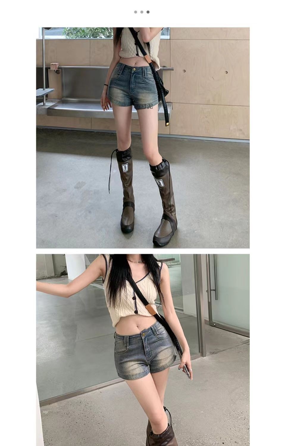 데님 반바지 여성 여름 레트로 블루 올 매치 캐주얼 패션 1/2 조각 오래 된 타이트 허리 세척 3 점 핫 바지 공장스토어 가기