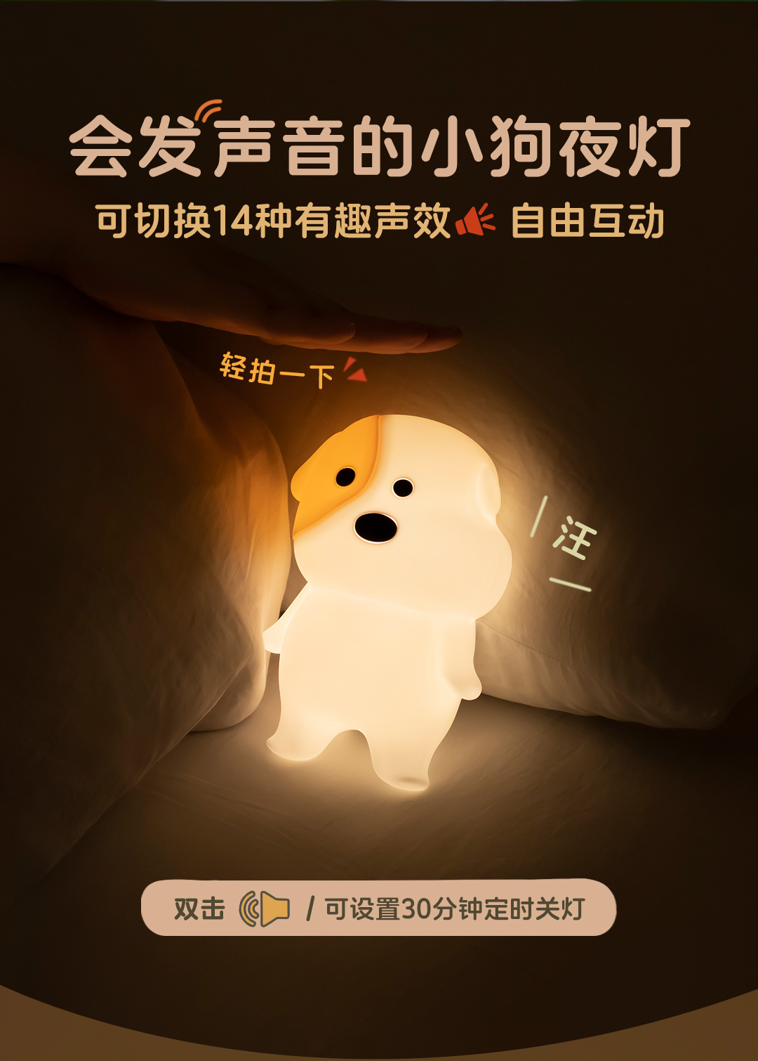 가벼운 침실 수면 침대 옆 빛 실리콘 빛 선물 생일 분위기 빛을 두드리는 평면 강아지 밤 빛 강아지스토어 가기