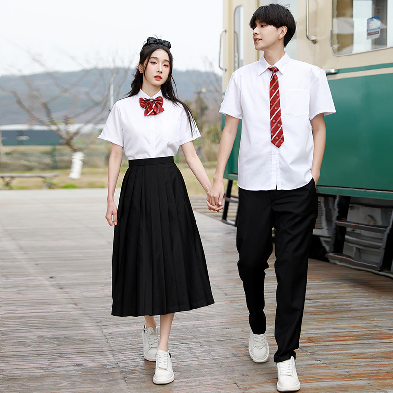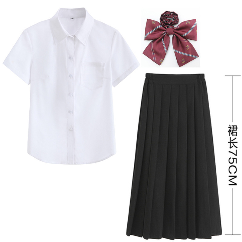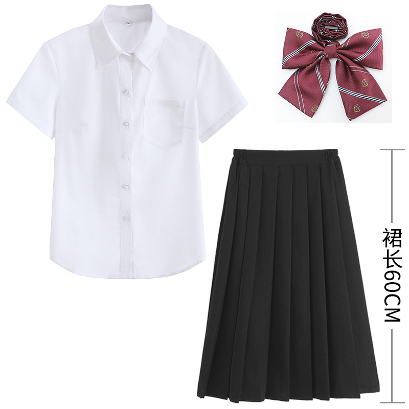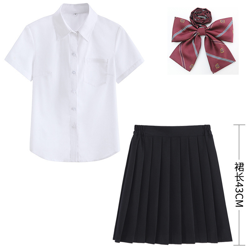 • 여아 반팔 셔츠 + 검정 스커트 + 빨간색 왕관 넥타이