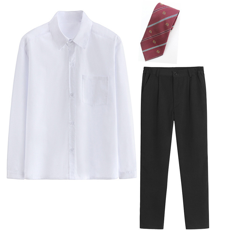 • 남성용 긴팔 셔츠 + 검은색 바지 + 빨간색 왕관 넥타이