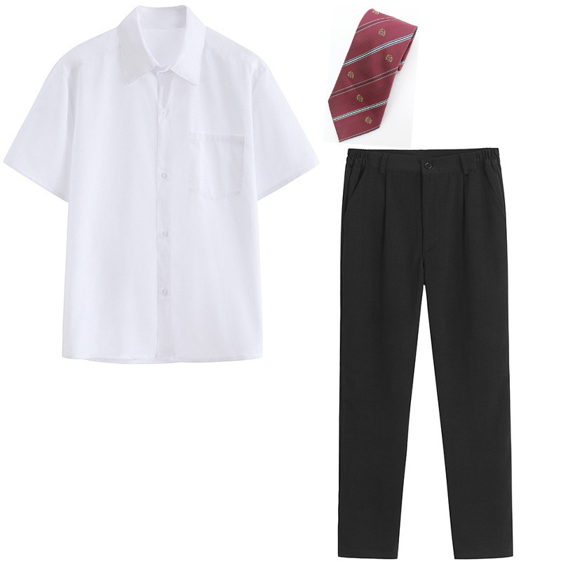 • 남아용 반팔 셔츠 + 검은색 바지 + 빨간색 왕관 넥타이