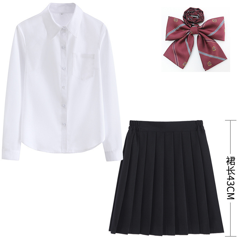 • 여아 긴팔 셔츠 + 검정 스커트 + 빨간색 왕관 넥타이
