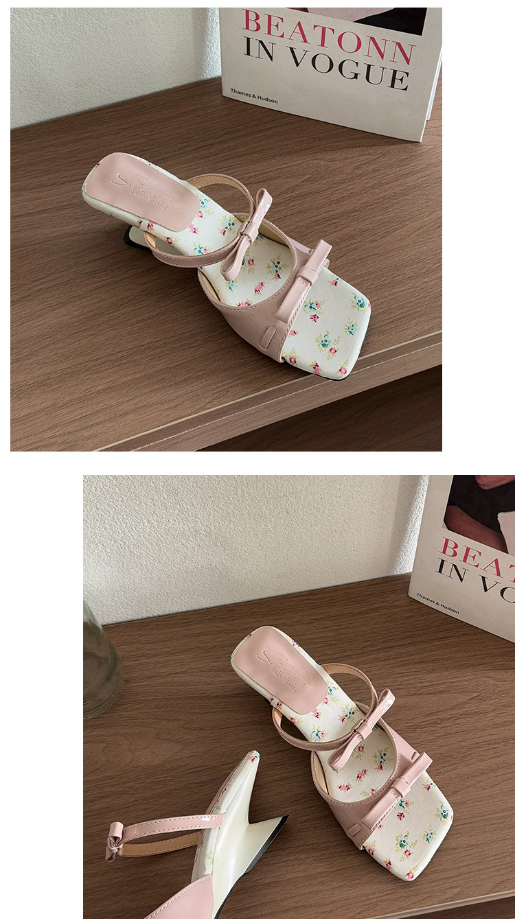 2025 여름 새로운 프랑스 스타일 우아한 광장 발가락 우아한 특수 모양의 뒤꿈치 슬리퍼 여성 한국 스타일 오픈 발가락 활 여성 신발스토어 가기