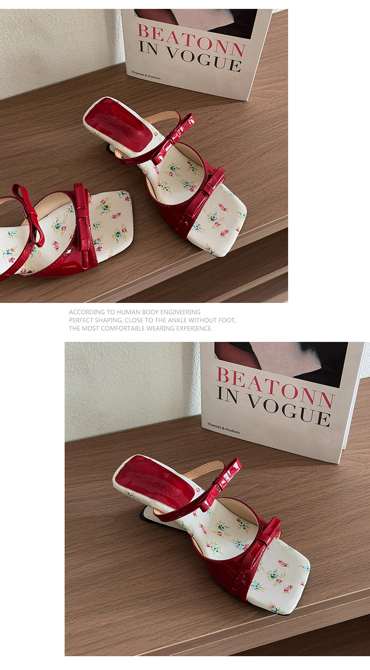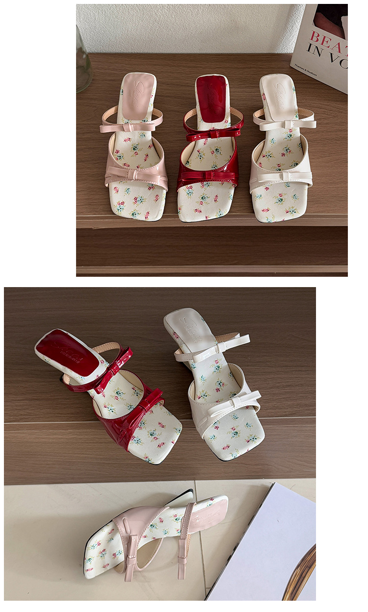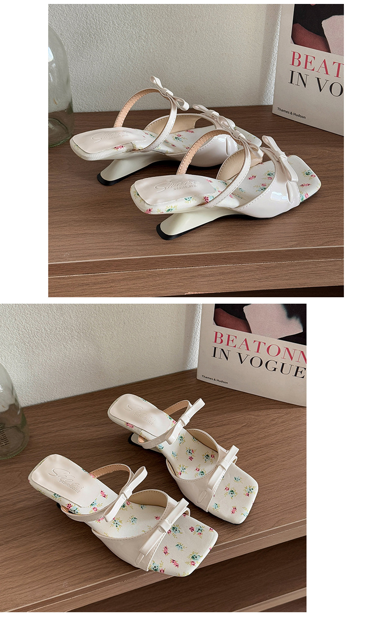 2025 여름 새로운 프랑스 스타일 우아한 광장 발가락 우아한 특수 모양의 뒤꿈치 슬리퍼 여성 한국 스타일 오픈 발가락 활 여성 신발