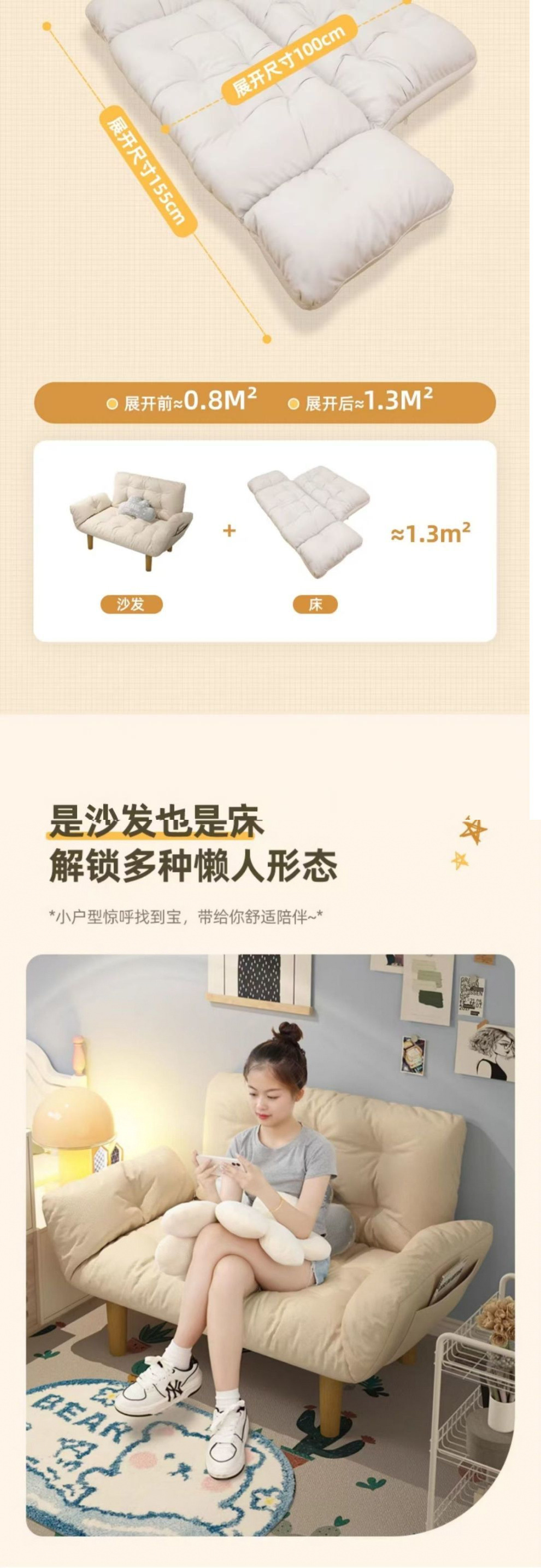 게으른 소파 더블 렌탈 룸 침실 작은 아파트 인터넷, 다타미 발코니 캐주얼 접이식 소파 베드 리라이너