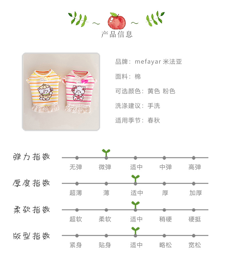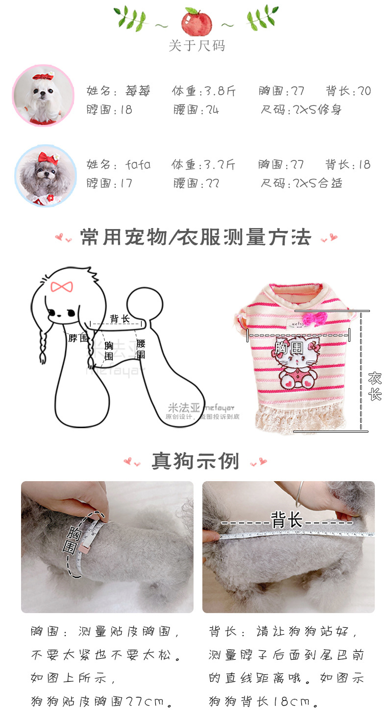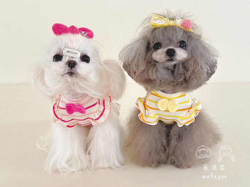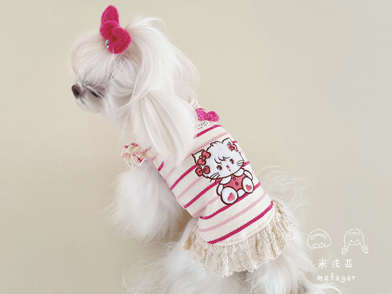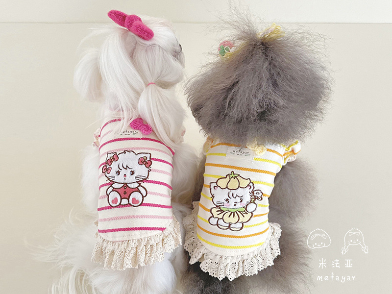 Mifaya 애완 동물 고양이와 개 옷 봄과 여름 줄무늬 새끼 고양이 만화 자수 면 레이스 활 공주 원피스스토어 가기