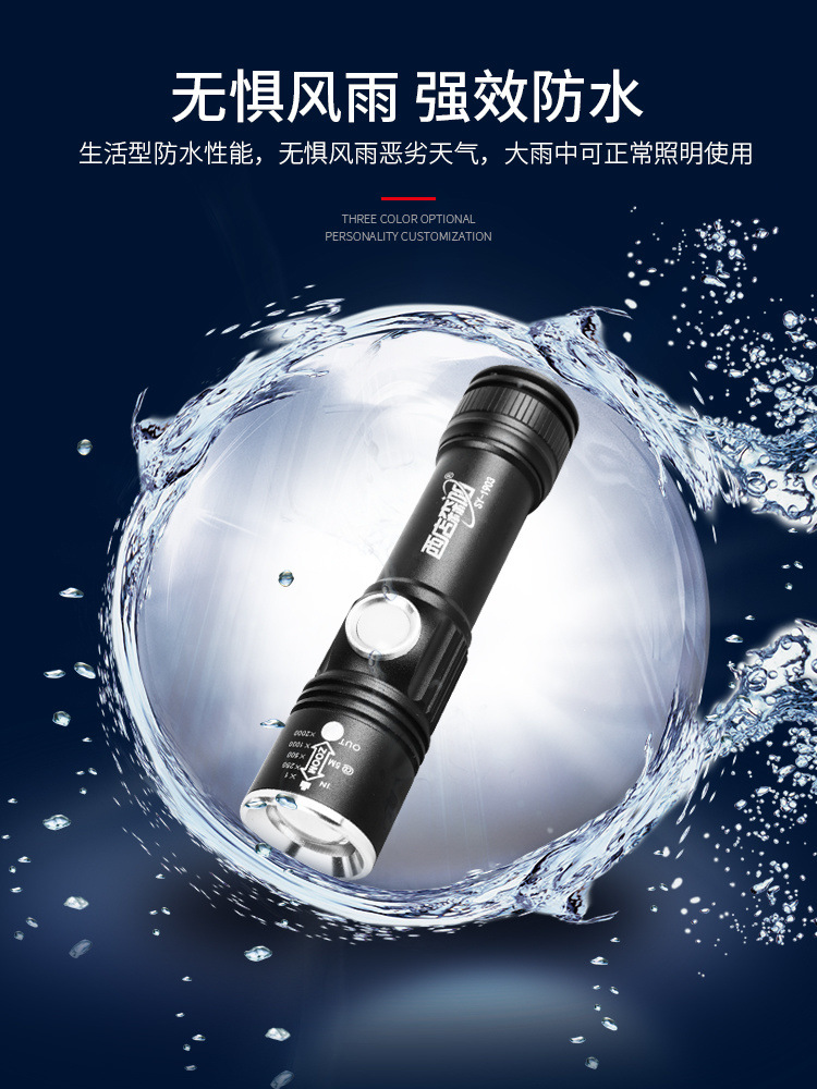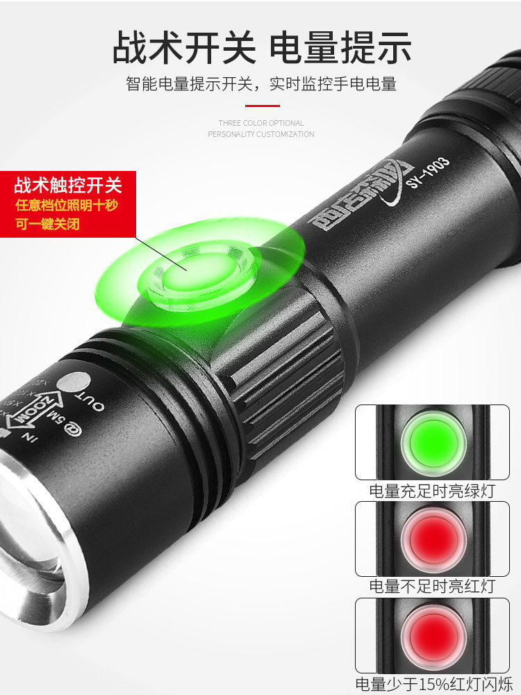 손전등 충전식 USB 슈퍼 밝은 원격 LED 조명 줌 야외 가정용 미니 학생 작은 손전등