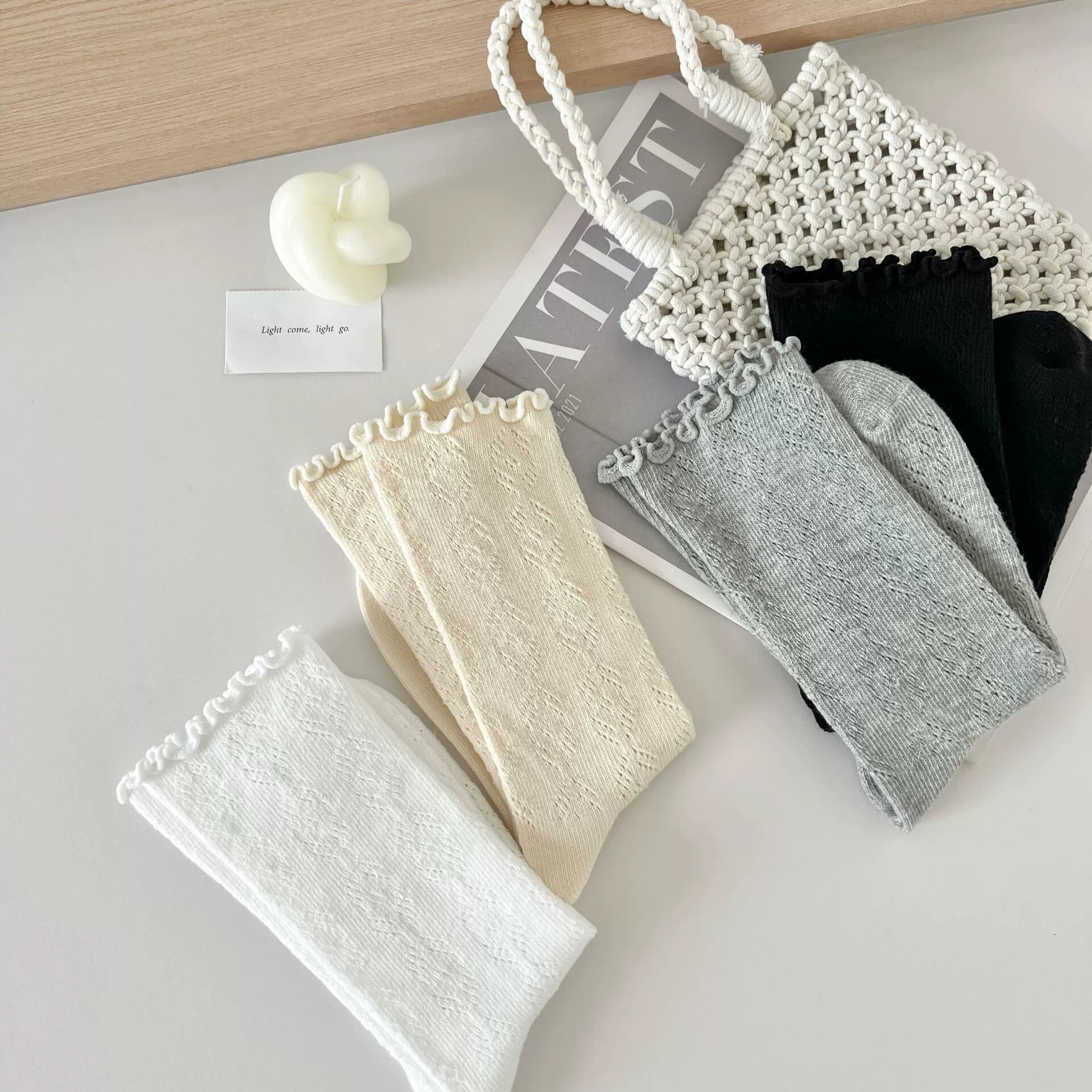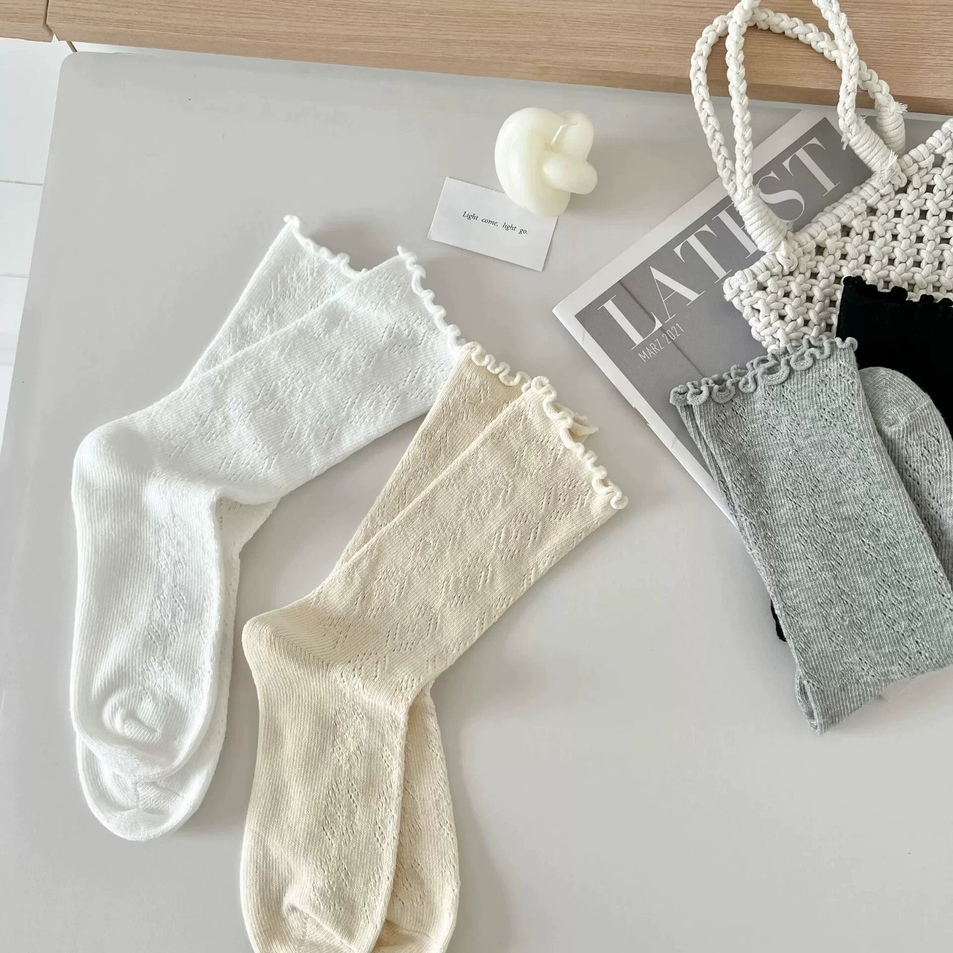 새로운 가을과 겨울 양말 어린이 중간 튜브 달콤한 귀 일본 스타일 따뜻한 더블 바늘 뼈없는 더미 캐주얼 스포츠 양말