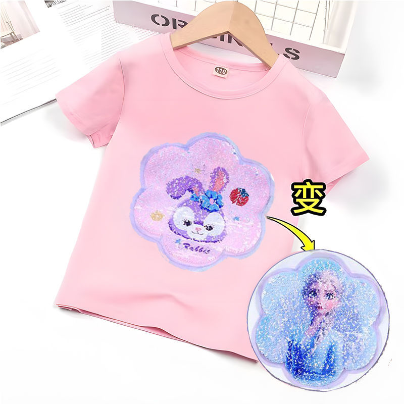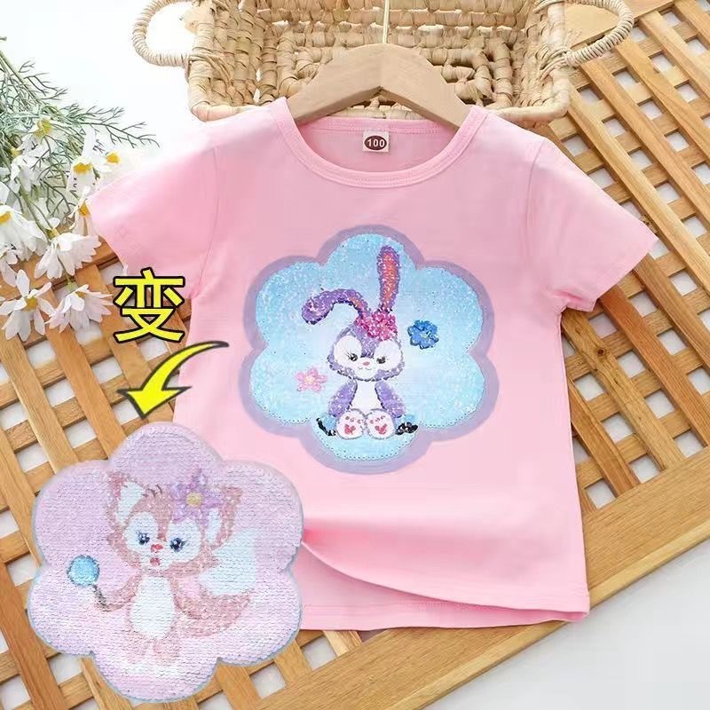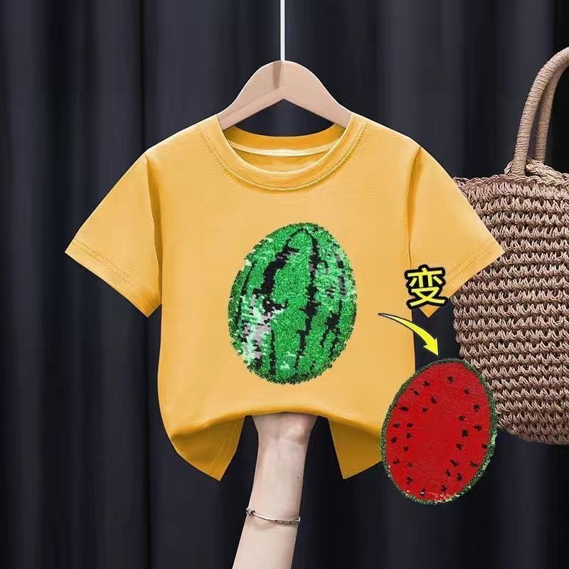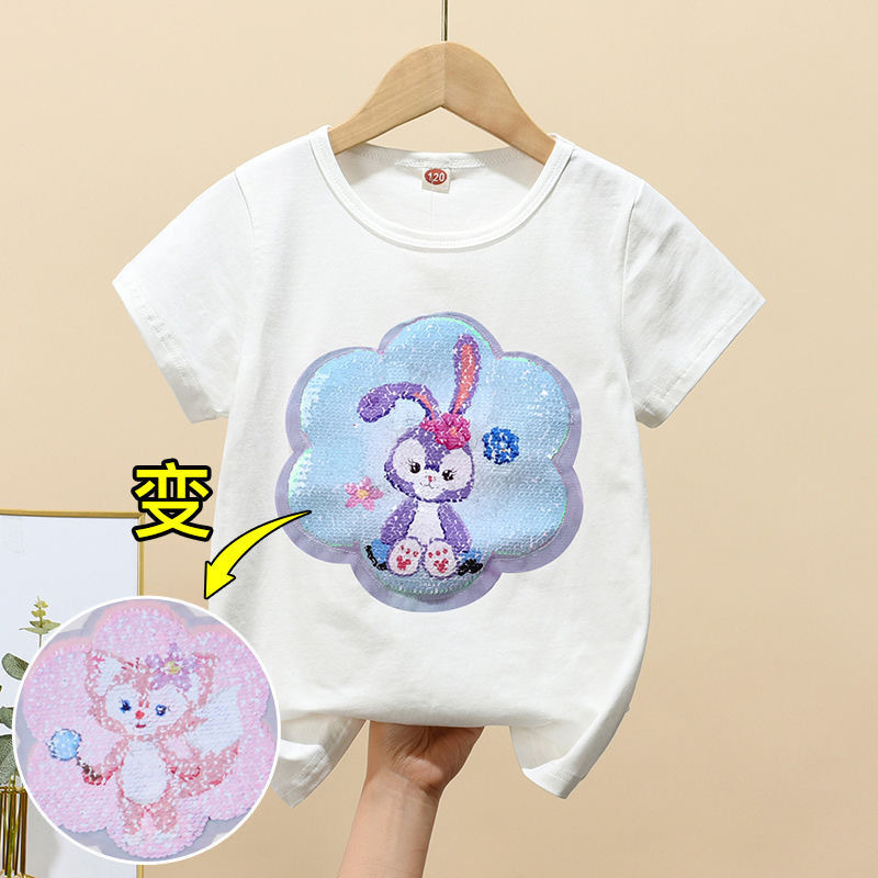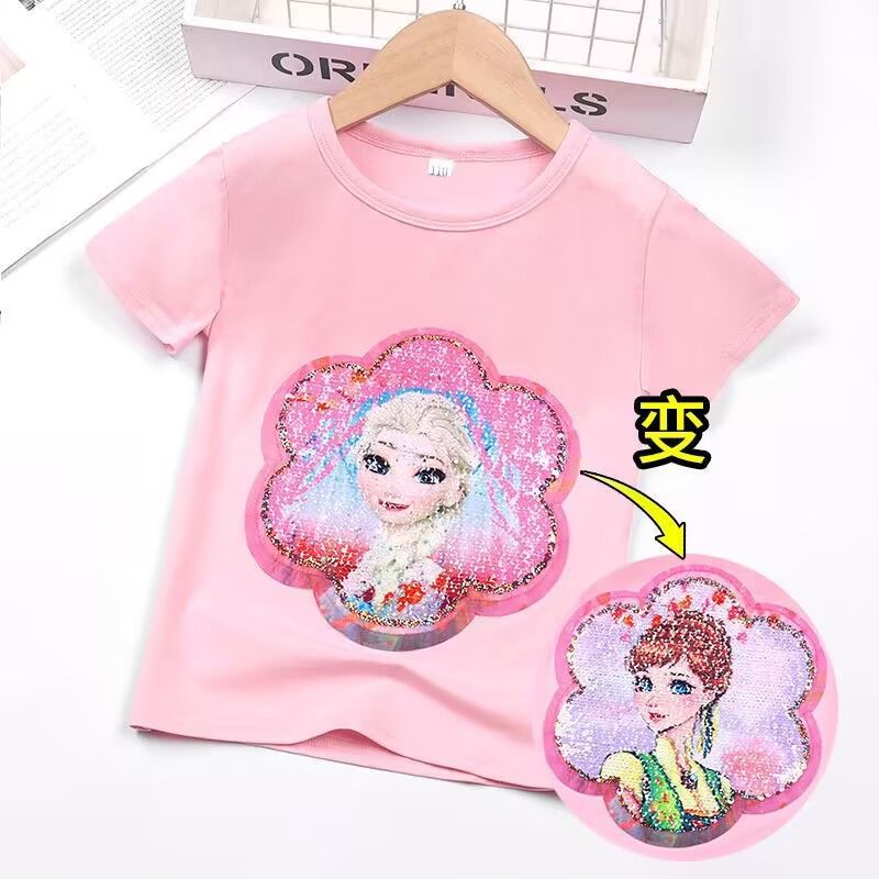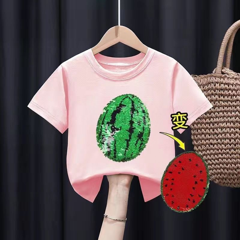 어린이 티셔츠 2025 새로운 여름 면화 반팔 소녀 어린이 스퀸 색상 변경 옷 어린이 탑스토어 가기