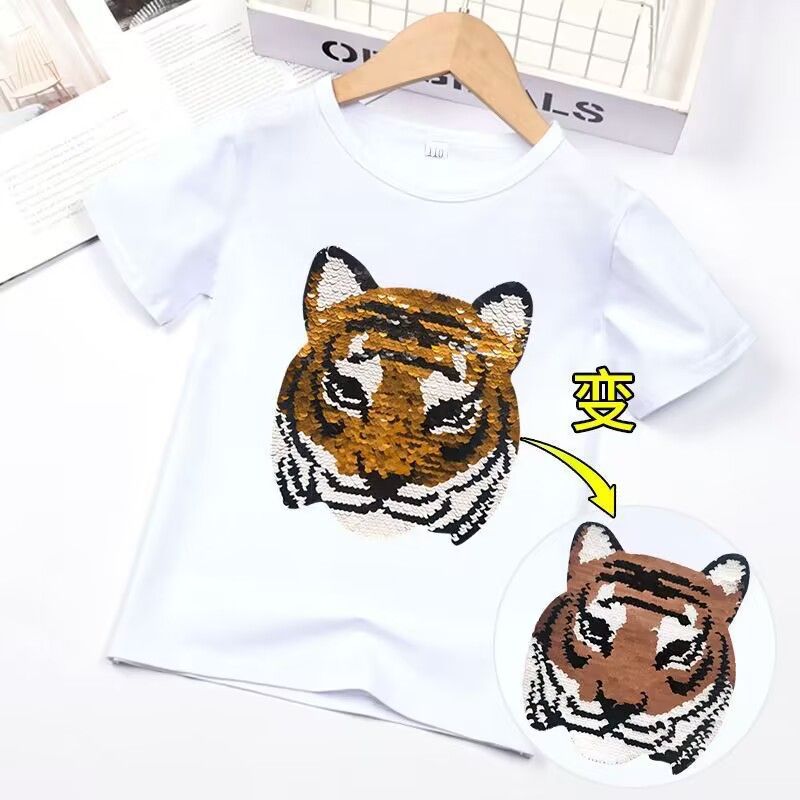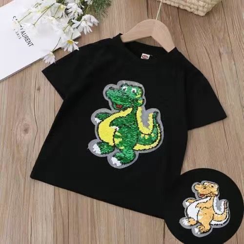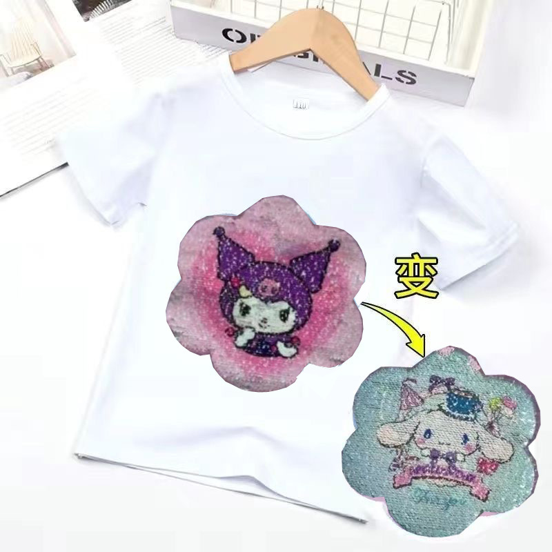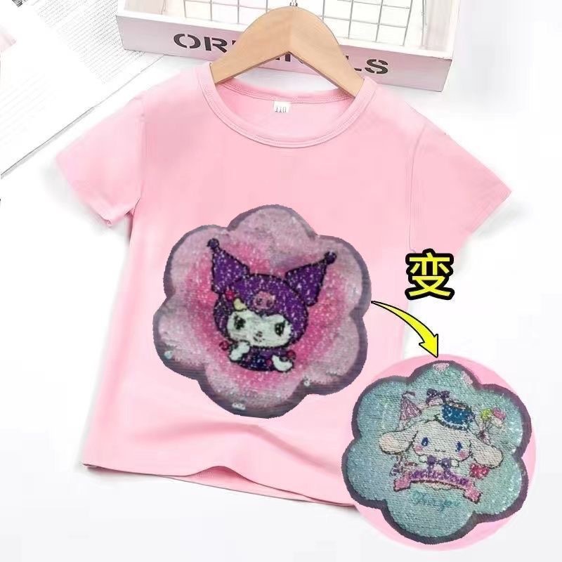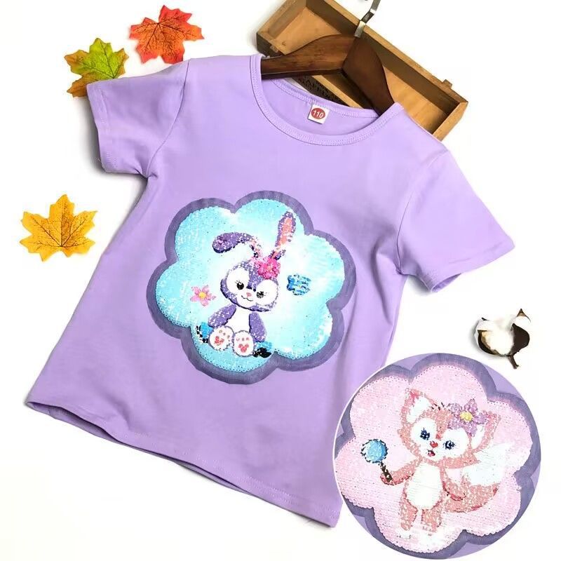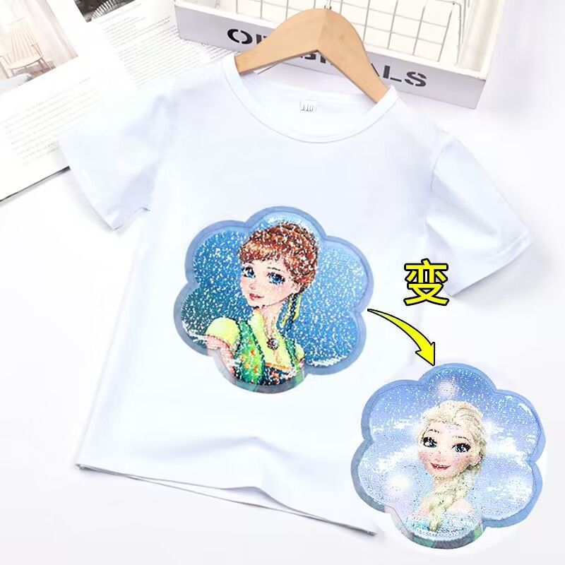 어린이 티셔츠 2025 새로운 여름 면화 반팔 소녀 어린이 스퀸 색상 변경 옷 어린이 탑스토어 가기