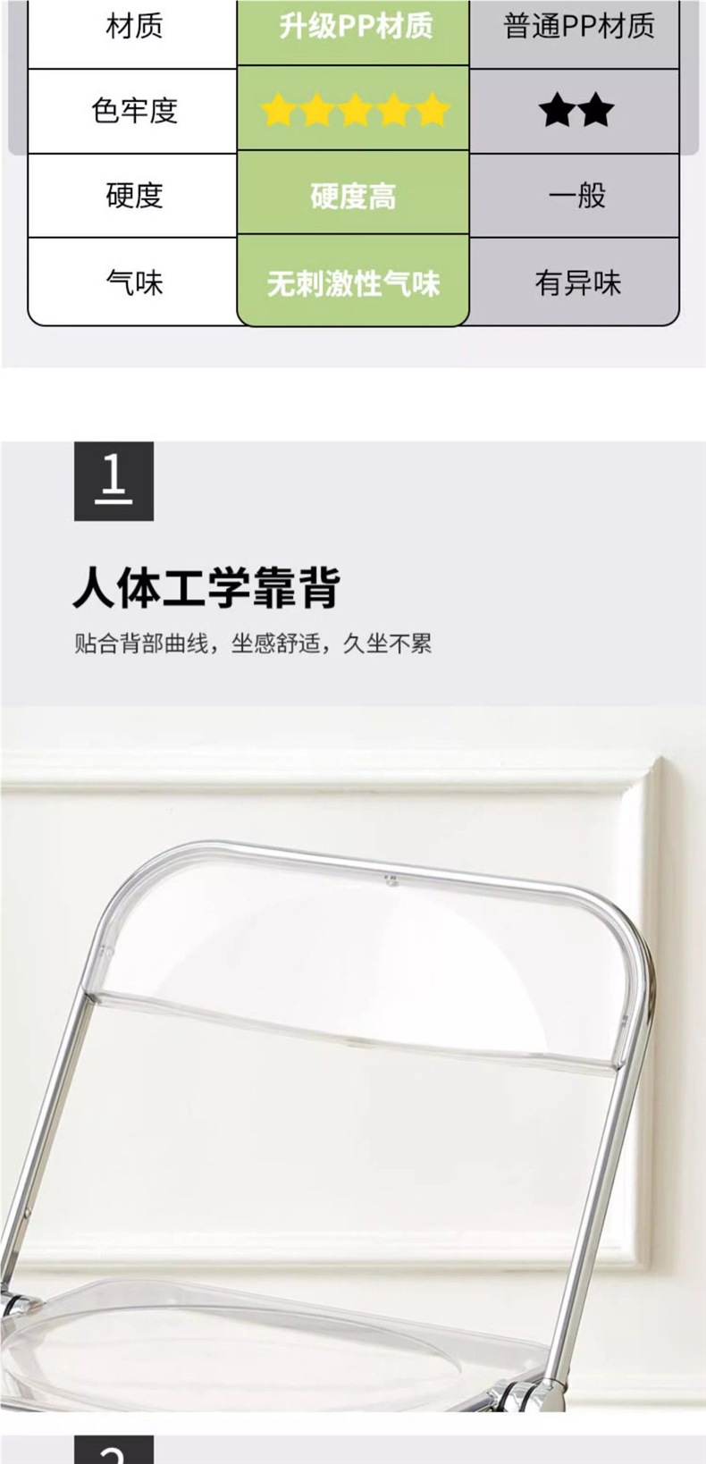 • 연한 녹색 투명 접이식 의자 [업그레이드된 PC 소재]
