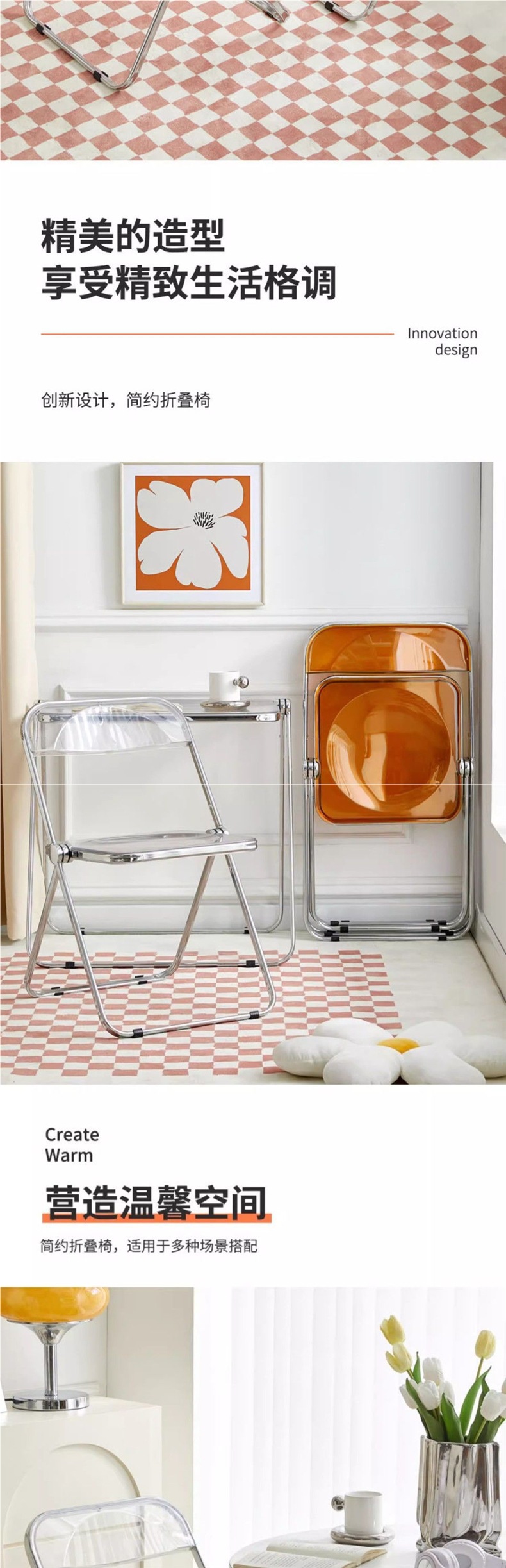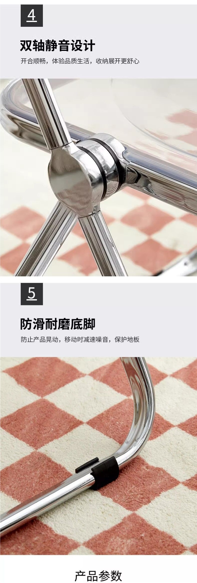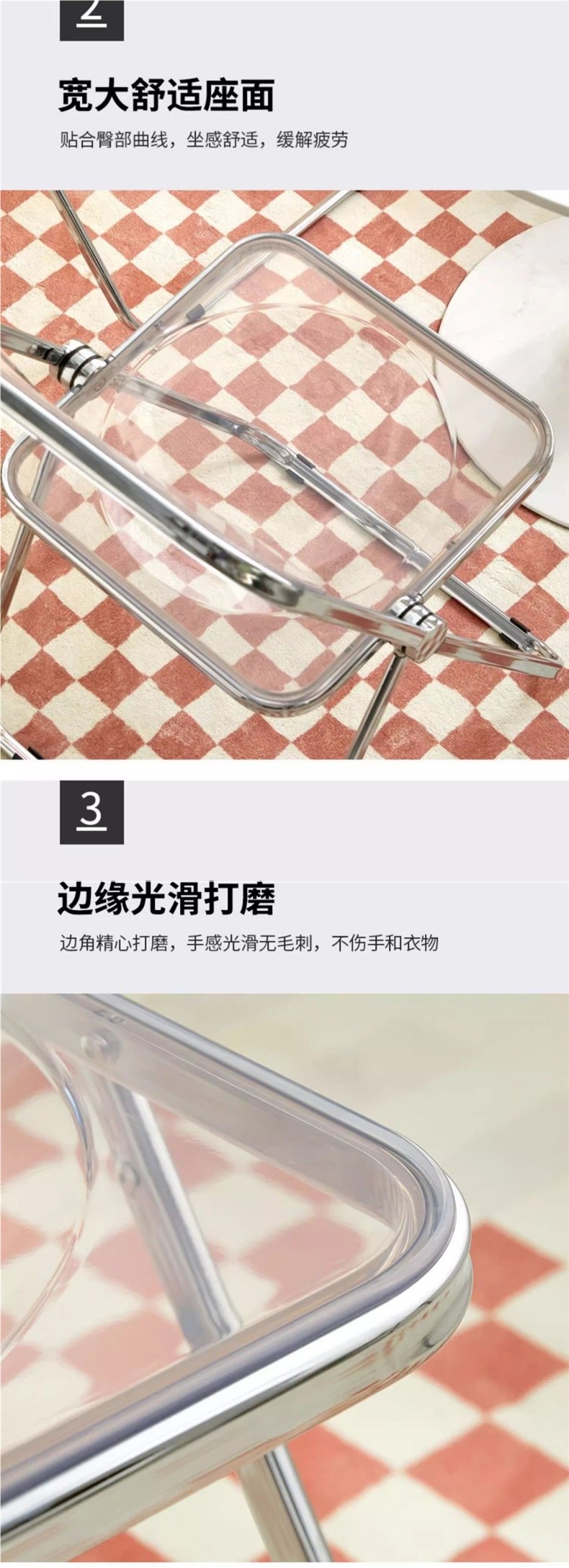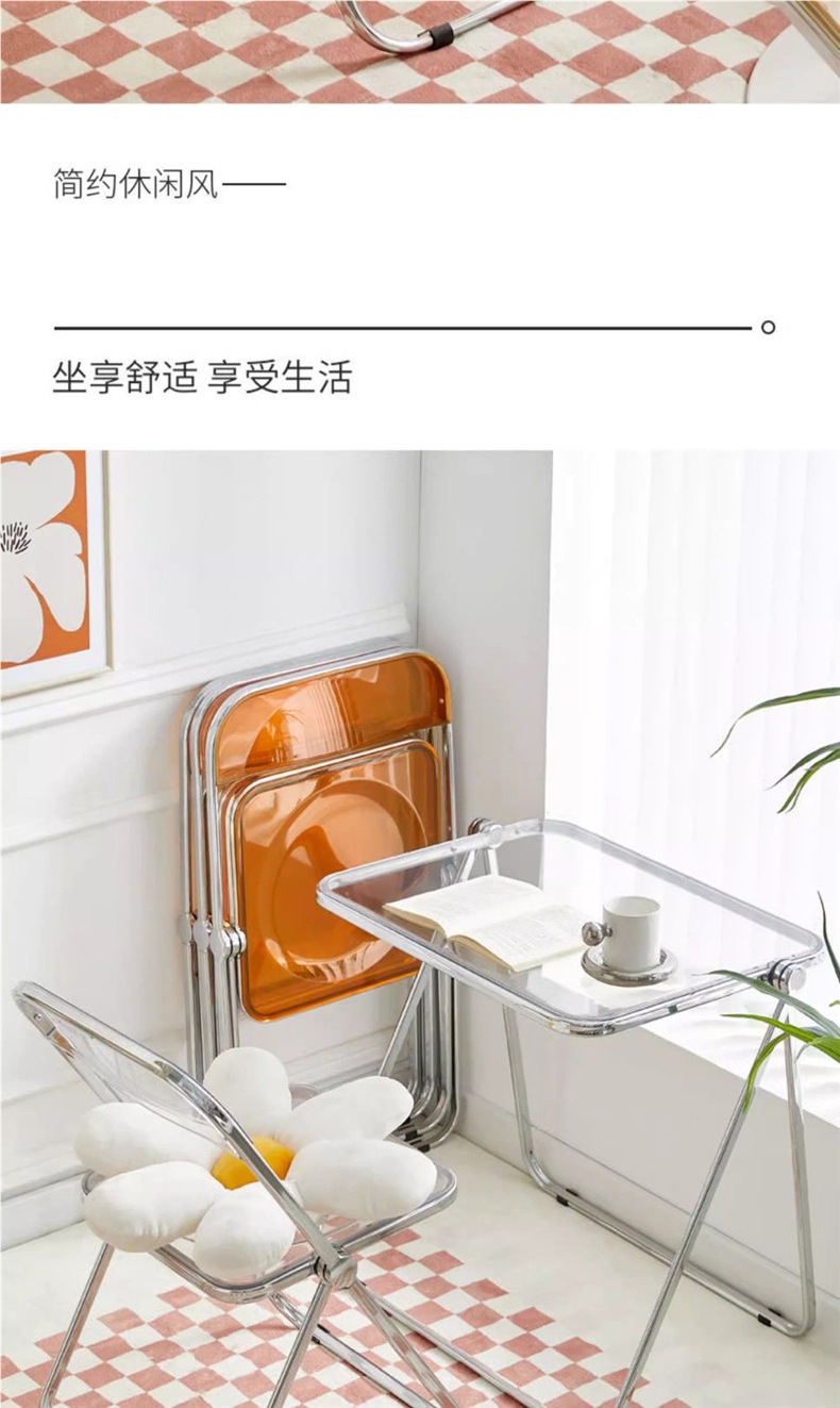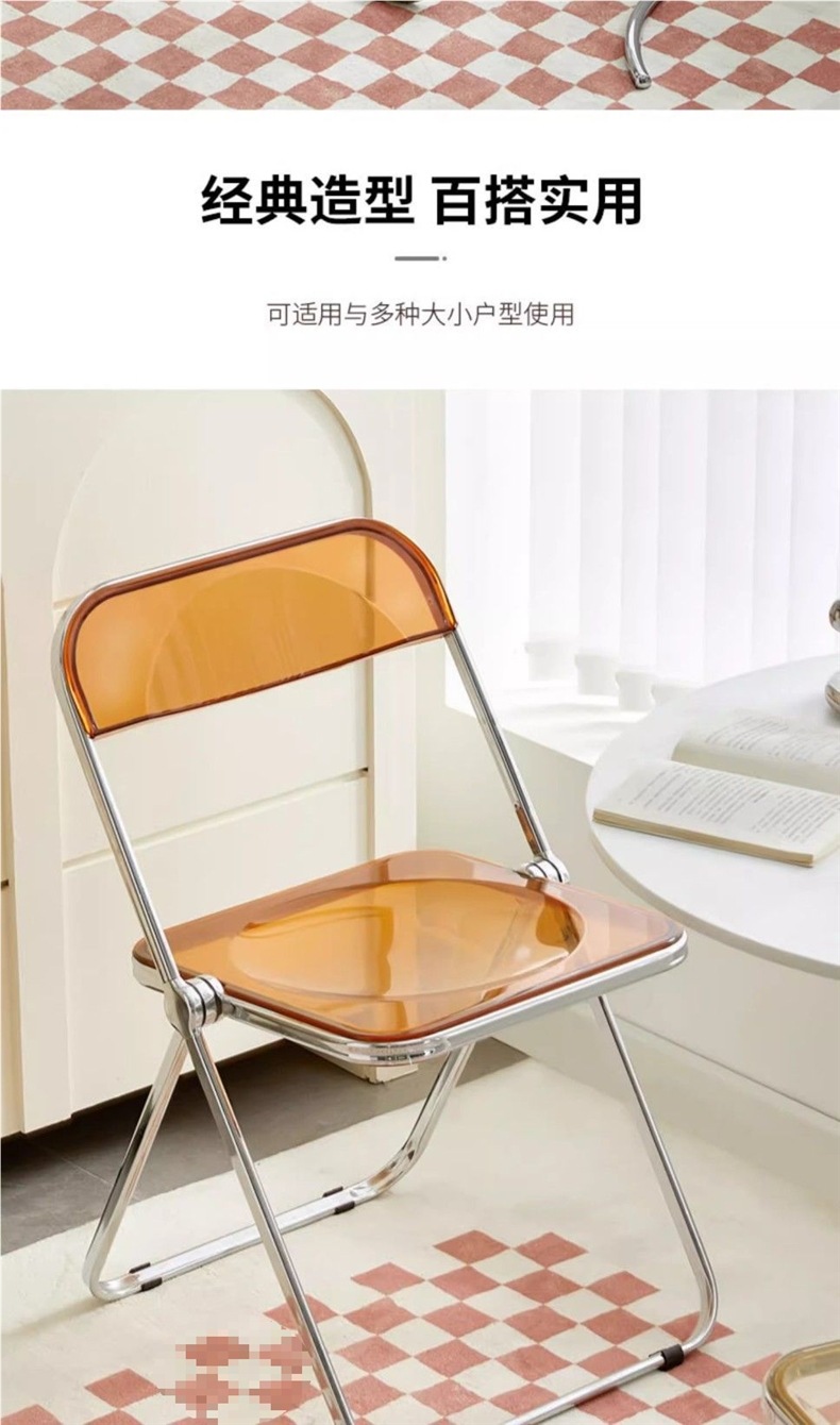 • 호박색 투명 접이식 의자 [업그레이드된 PC 소재]