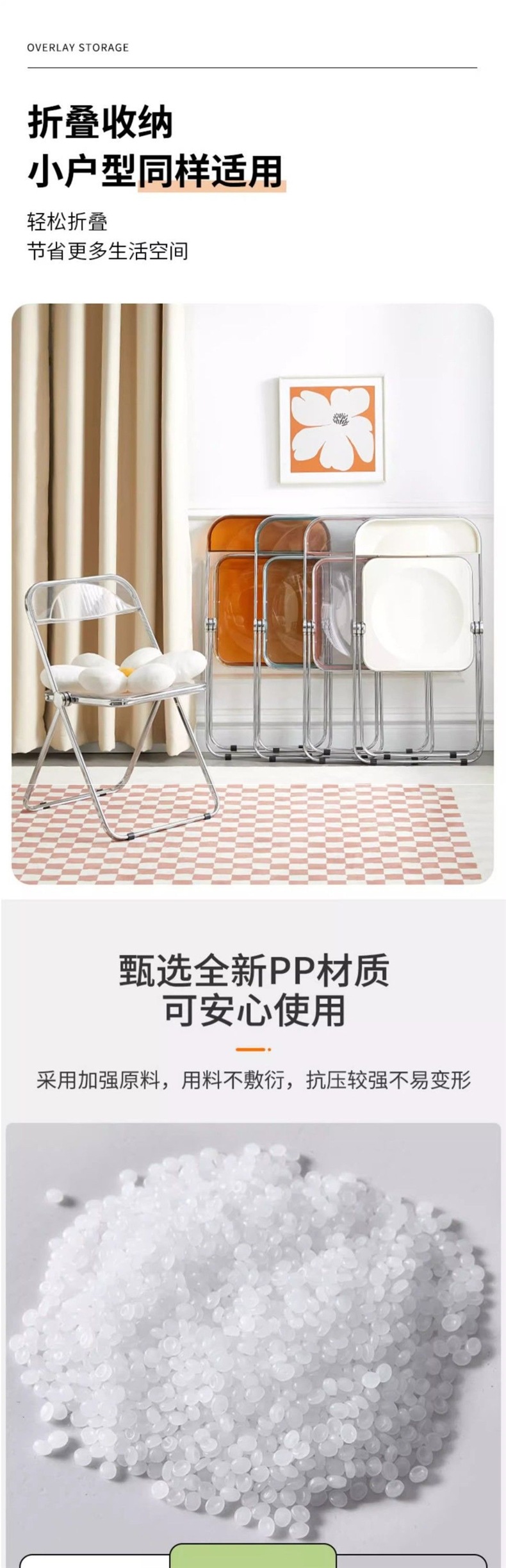 • 황백색 투명 접이식 의자 [업그레이드된 PC 소재]
