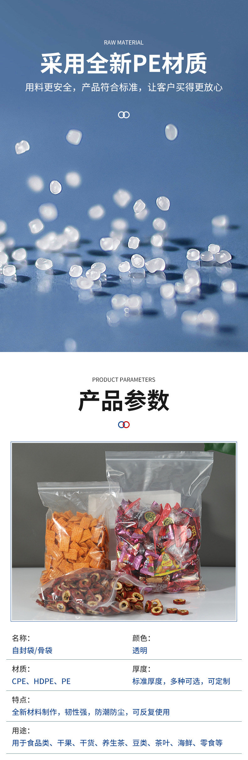 투명 자체 밀봉 백 재고 두껍게 분할 된 뼈 가방 저장 가방 pe 소형 가방 도매 비닐 봉인 가방