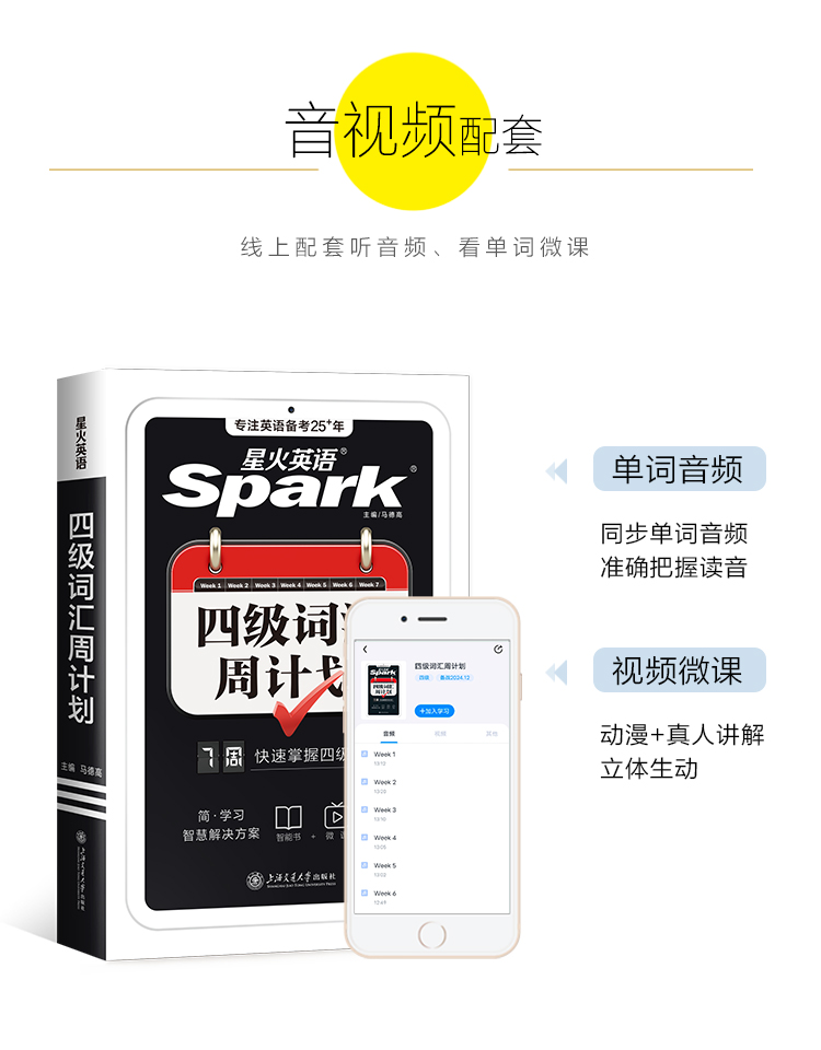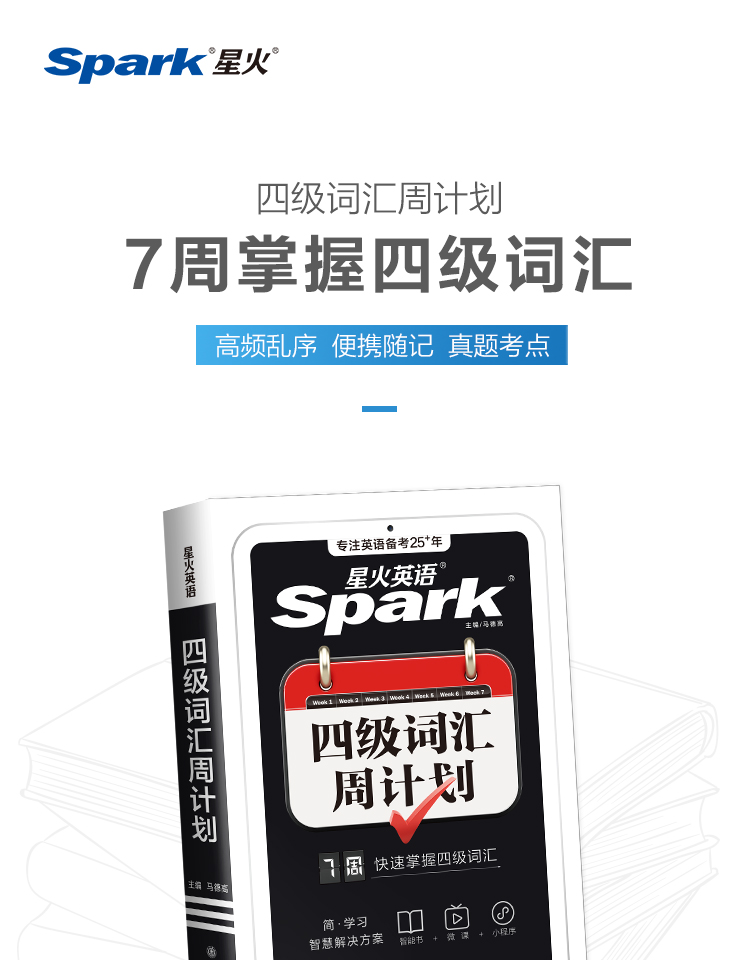 스파크 영어 CET-4 영어 어휘 주간 계획 작은 포켓 북 대학 영어 cet4 CET-6 고주파 단어스토어 가기